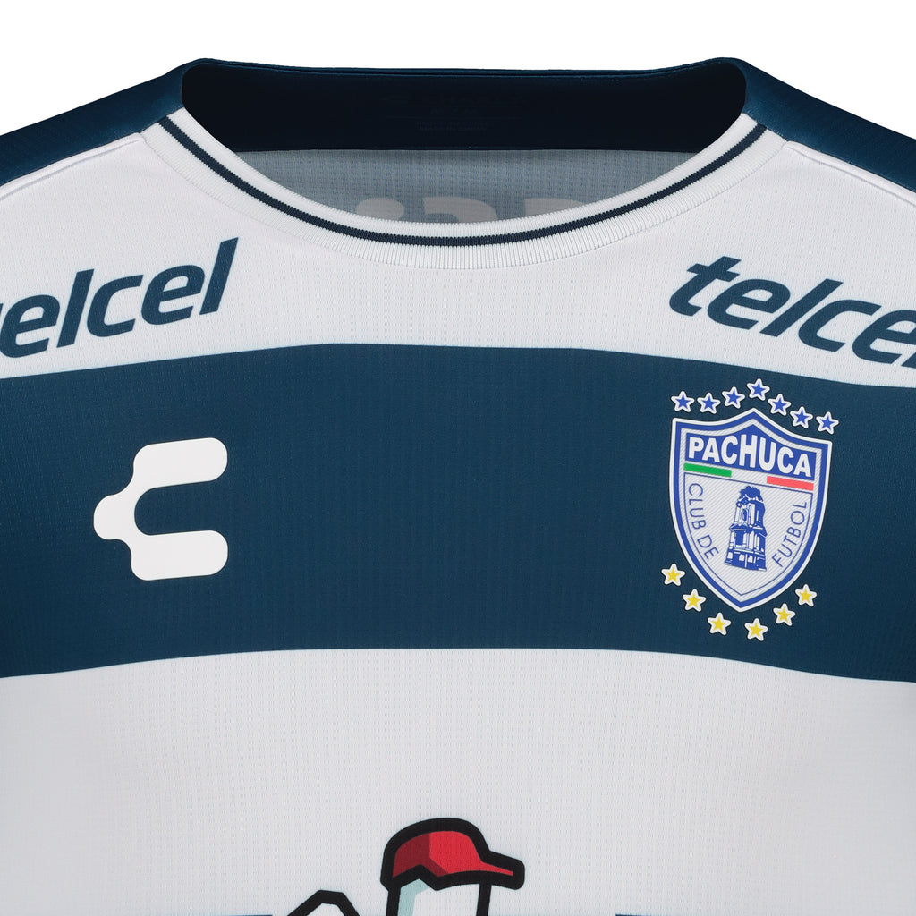Vive la pasión y la comodidad de la camiseta de local del Pachuca CF 24/25 de Charly Soccer. Con un diseño clásico y tecnología de vanguardia, esta camiseta representa el fuerte vínculo entre la afición y el equipo. Apoya a los Tuzos con estilo y comodidad.
