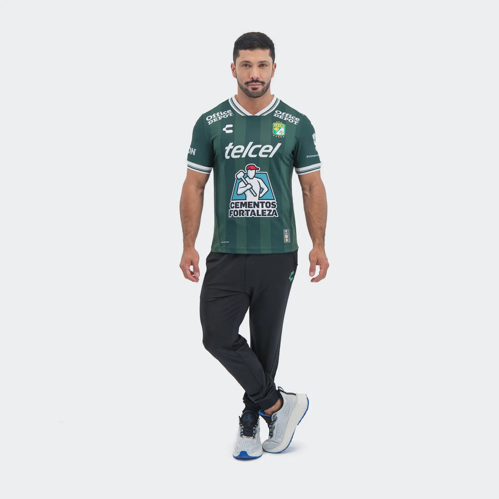 camiseta de local Charly León FC temporada 25/26 . Con las clásicas rayas verticales verdes y un cómodo corte regular, esta camiseta combina tradición y rendimiento moderno. Confeccionada en poliéster suave con ventilación de malla, te mantiene fresco y seco gracias a las tecnologías DRY FACTOR y UV Block. El diseño incluye un escudo de silicona tejido y detalles sutiles que rinden homenaje a la rica historia del León. Perfecta para usar a diario o para animar desde las gradas, esta camiseta te permite lucir tu orgullo y mantenerte fresco por más tiempo.