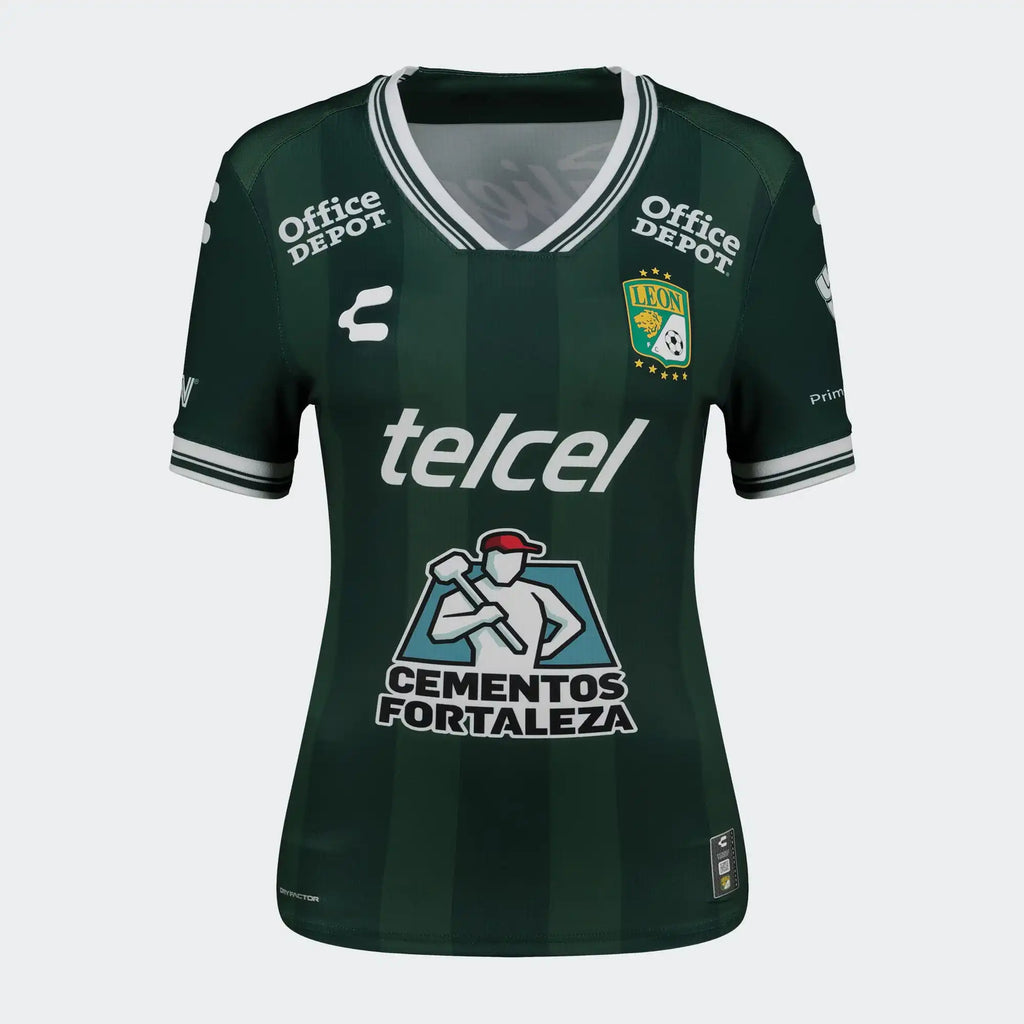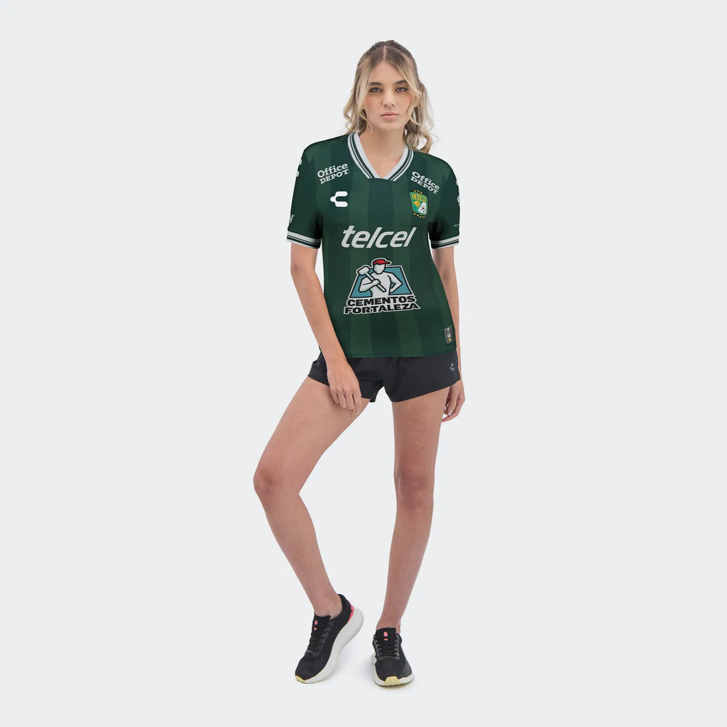 camiseta de local Charly León FC temporada 25/26 (para mujer) . Con las clásicas rayas verticales verdes y un cómodo corte regular, esta camiseta combina tradición y rendimiento moderno. Confeccionada en poliéster suave con ventilación de malla, te mantiene fresca y seca gracias a las tecnologías DRY FACTOR y UV Block. El diseño incluye un escudo de silicona tejido y detalles sutiles que rinden homenaje a la rica historia del León. Perfecta para usar a diario o para animar desde las gradas, esta camiseta te permite lucir tu orgullo y sentirte fresca por más tiempo.