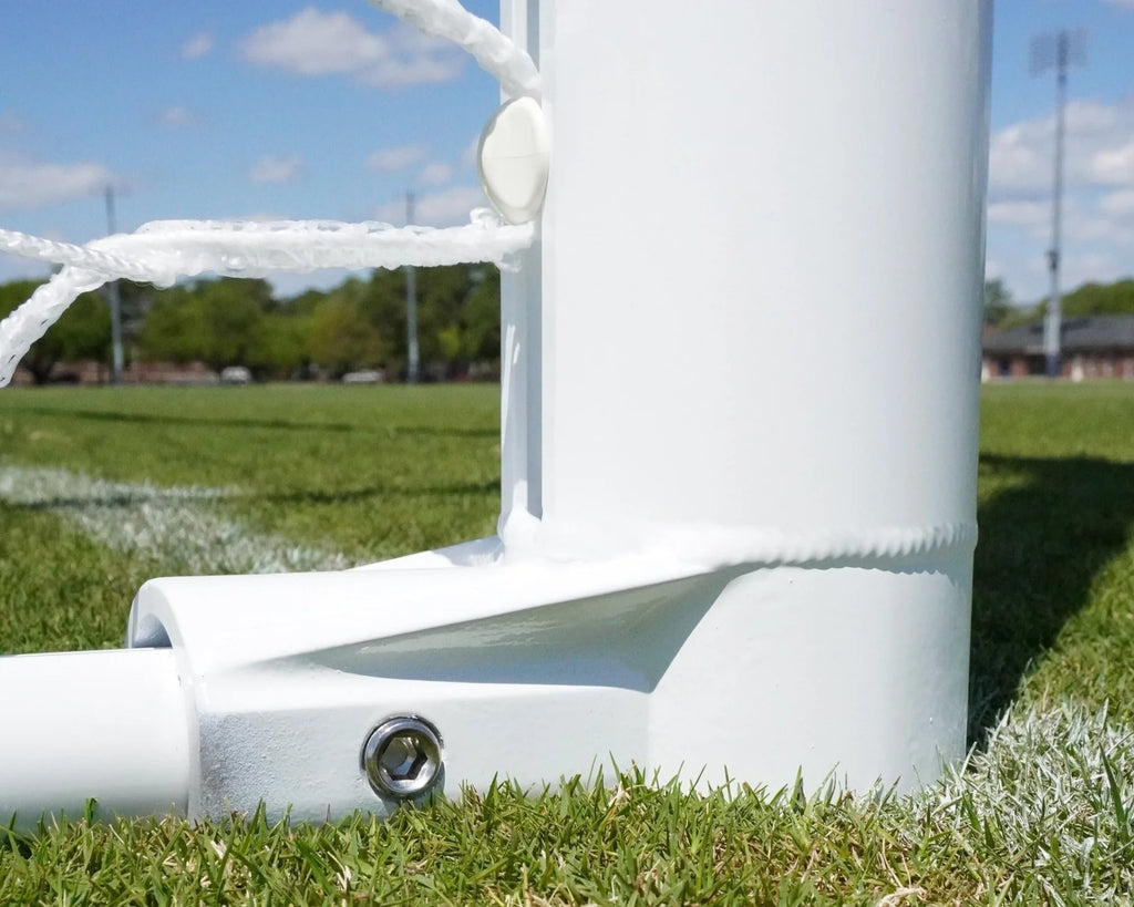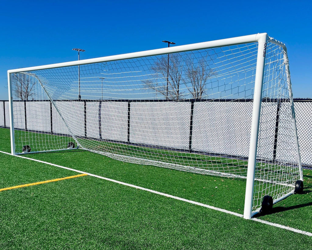 La portería de fútbol Pevo Channel de 122 x 183 cm está fabricada con tubos de aluminio redondos de 10 cm de diámetro, ligeros y con recubrimiento en polvo, con canal integrado y cantoneras y base de aluminio resistentes. Incluye soportes traseros de aluminio redondos de 5 cm que se conectan a un tubo base canalizado de 5 cm. Viene con una red de 3 mm con fijaciones para la red, anclajes al suelo y tensores elásticos para sujetar la red a la barra de acero galvanizado.
