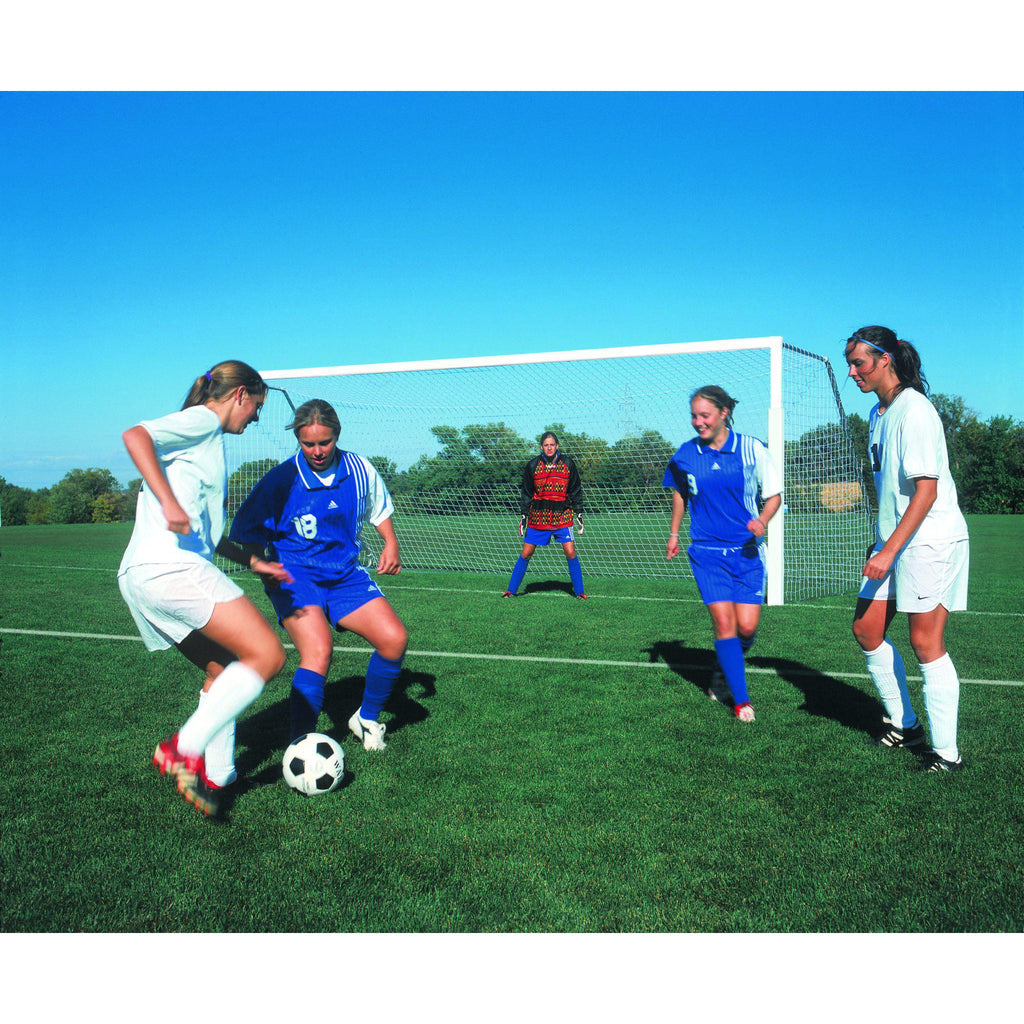 Estas porterías de fútbol Bison ShootOut de 6.5' x 18.5' (par), de 4" de diámetro, son una excelente opción para cualquier club de fútbol o instalación deportiva. La seguridad es su principal característica, gracias a la mayor profundidad de los soportes traseros y la fijación de la red sin necesidad de tornillería.