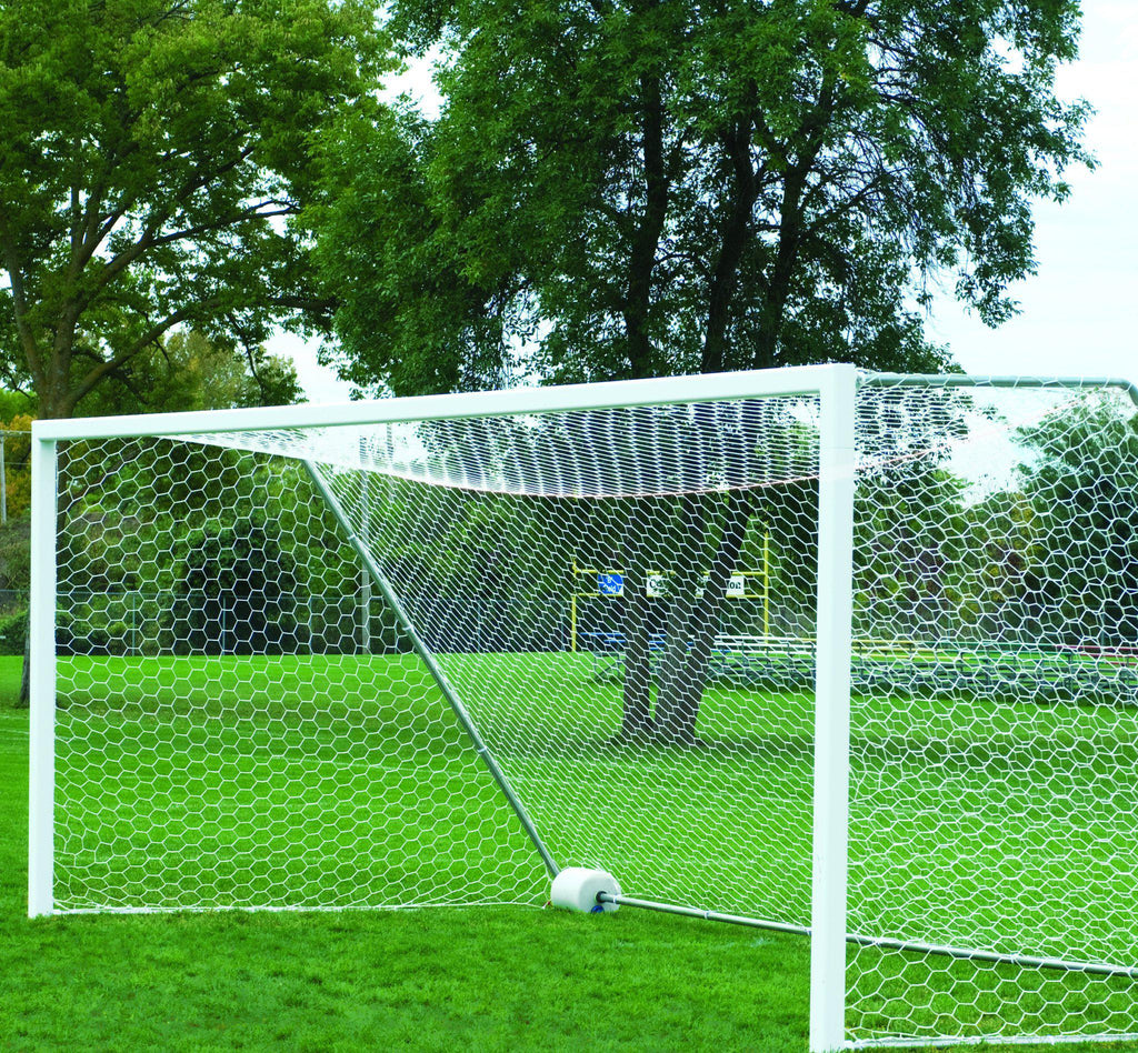Estas porterías de fútbol Bison de 8' x 24' (par), redondas y antivuelco de 4", son una opción de primera calidad para cualquier club de fútbol juvenil. Las porterías Bison antivuelco cumplen con la norma ASTM F2056 de seguridad y rendimiento, sin necesidad de utilizar bolsas de lastre sueltas ni estacas, que a menudo se olvidan o se instalan incorrectamente.