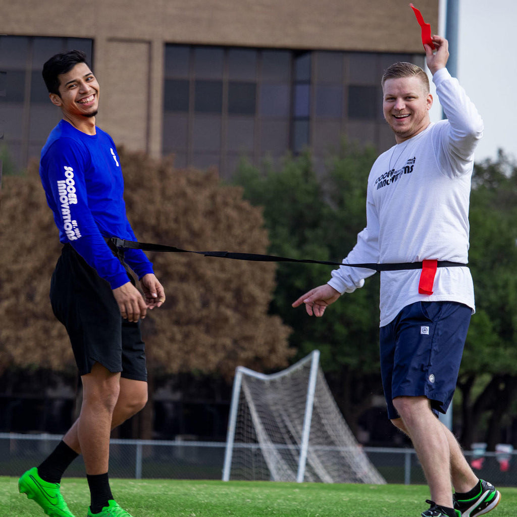 Desata todo tu potencial en el campo con el Cinturón de Evasión de Agilidad de Soccer Innovations . Esta increíble herramienta te ayudará a mejorar velocidad, agilidad, rapidez, resistencia, equilibrio, fuerza y coordinación. Diseñado para superar a tus rivales, las correas de velcro se abren automáticamente cuando los sobrepasas. Lleva tu entrenamiento de velocidad de reacción al siguiente nivel con el Cinturón de Evasión de Agilidad de Soccer Innovations.