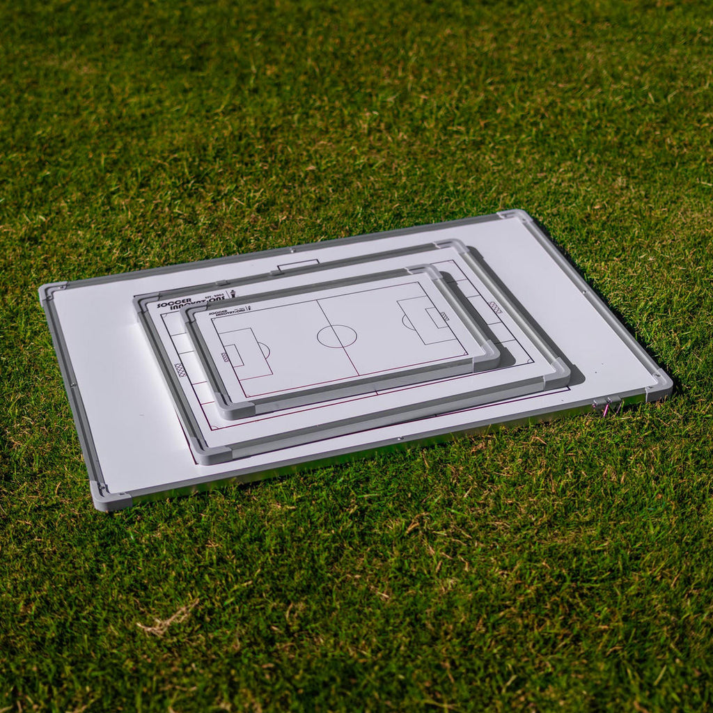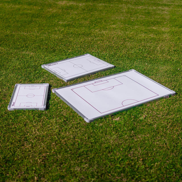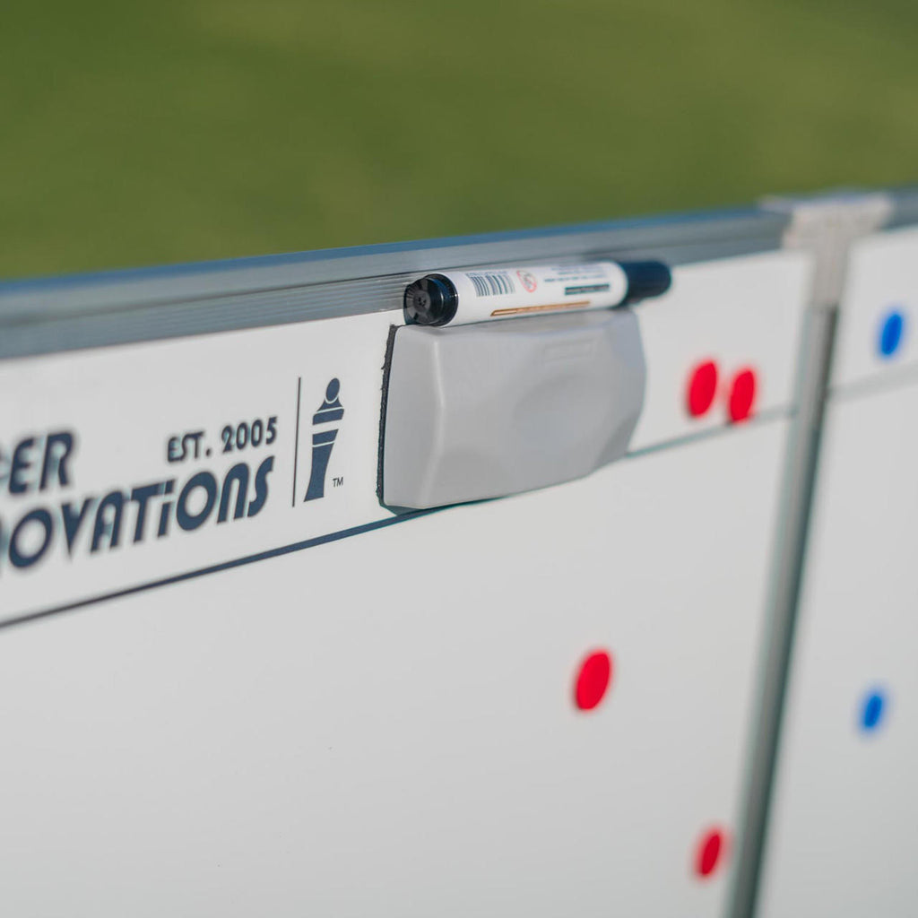 La pizarra táctica de doble cara Deluxe de Soccer Innovations (disponible en 3 tamaños) es perfecta para cualquier entrenador que busque una forma sencilla de explicar conceptos a su equipo, pero que no disponga de un vestuario. Incluye anillas para colgarla en la pared. Elija entre tres tamaños la que mejor se adapte a sus necesidades.