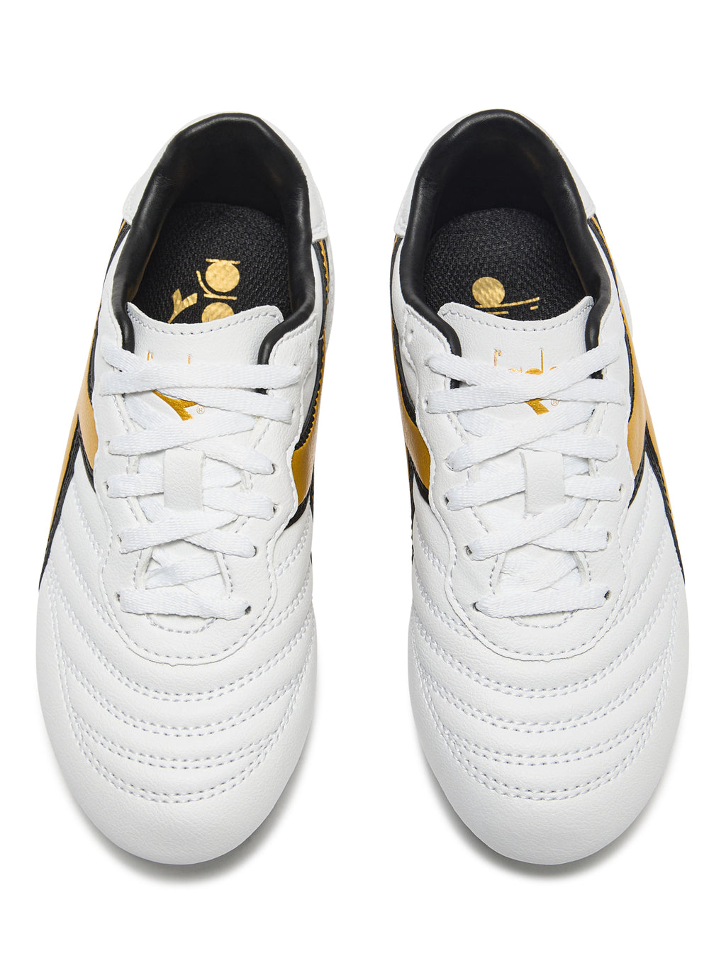 ¡Desata tu máximo potencial con las botas de fútbol Diadora Brasil R LPU JR (blancas/doradas) ! Esta colección, de renombre legendario, está confeccionada con SuprellSoft resistente al agua. Su forro antiestiramiento y la suela de PU antideslizante te brindan confianza y agilidad frente a tus oponentes. Con puntos de flexión y plantilla fija, estas botas te ayudarán a dominar la cancha.