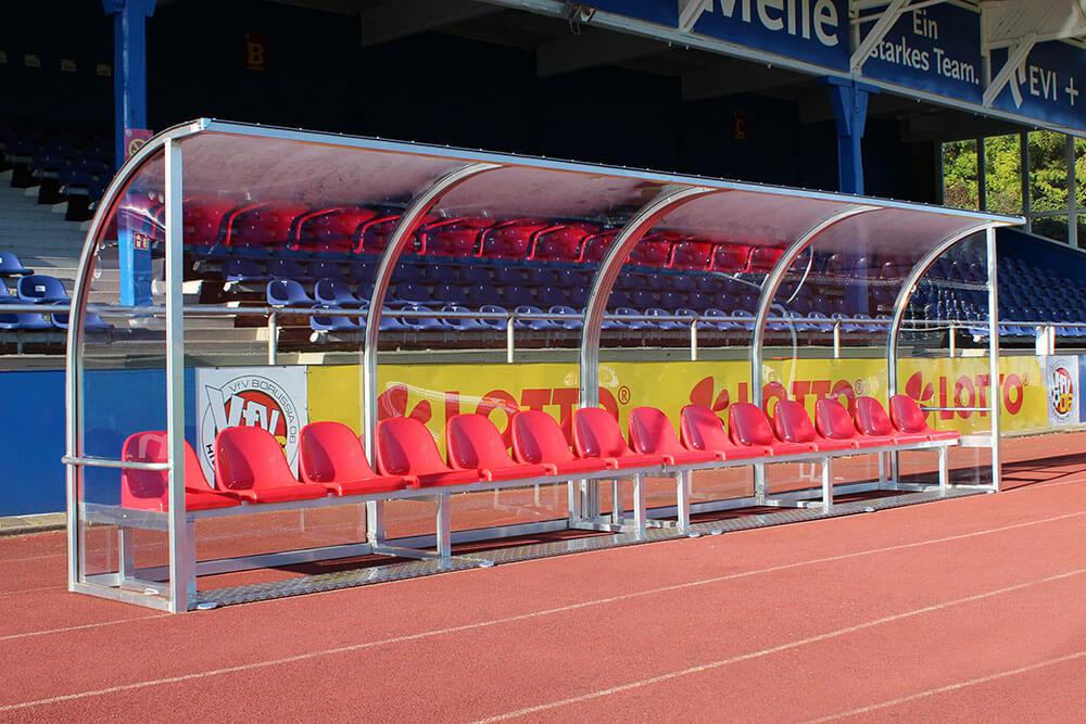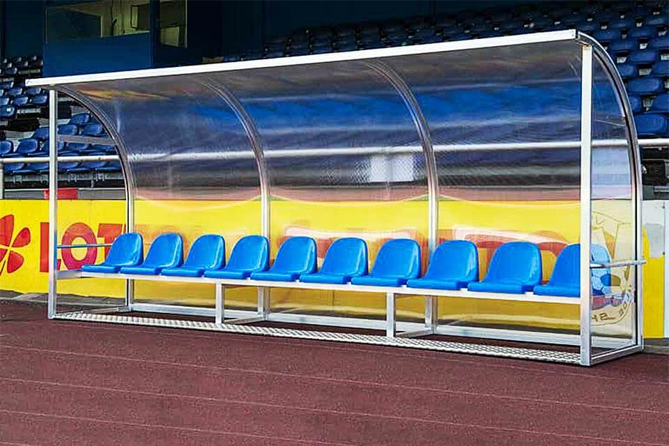 Diseñada para ofrecer la máxima comodidad y funcionalidad, la carpa Helogoal Champion Team Shelter es ideal para los programas de fútbol de clubes y escuelas de élite. Se fija al lugar para su uso durante partidos y torneos, y luego se transporta fácilmente a un almacén o a otra ubicación una vez finalizados. Elija entre opciones de 12 o 14 asientos, así como entre una amplia gama de colores de asientos moldeados para que combinen con su estadio. Opte por un estilo clásico-retro con la banca de madera (disponible solo en la longitud de 14 pies).