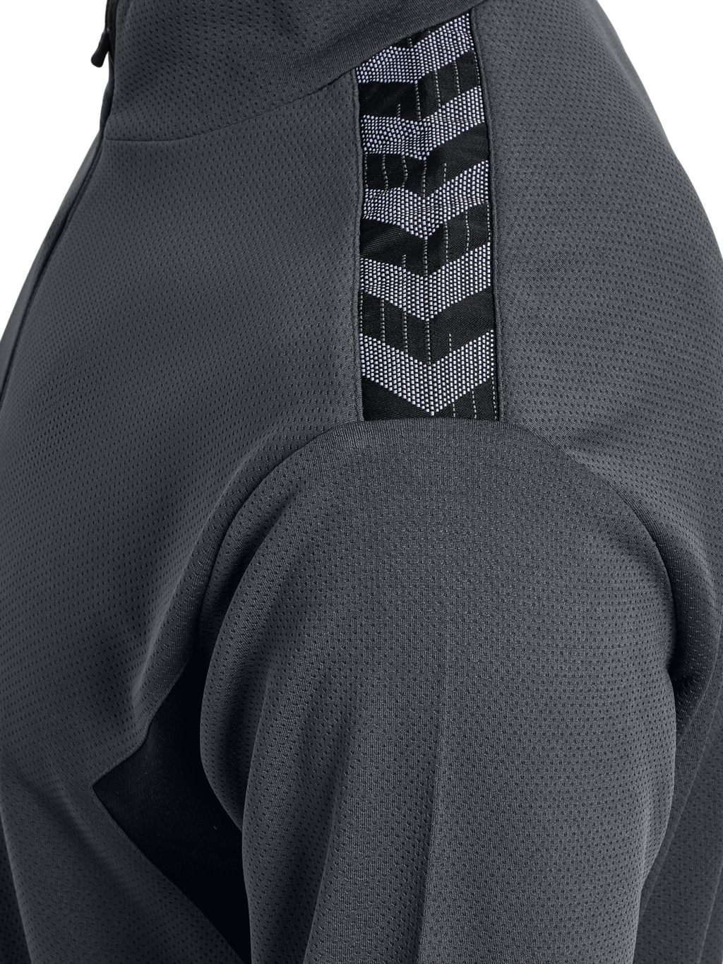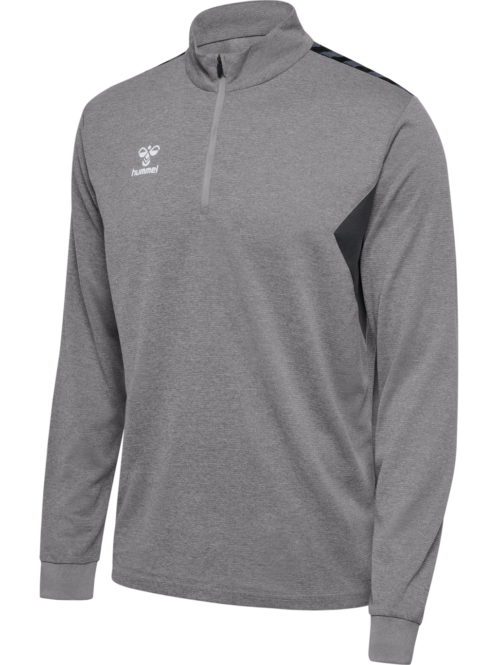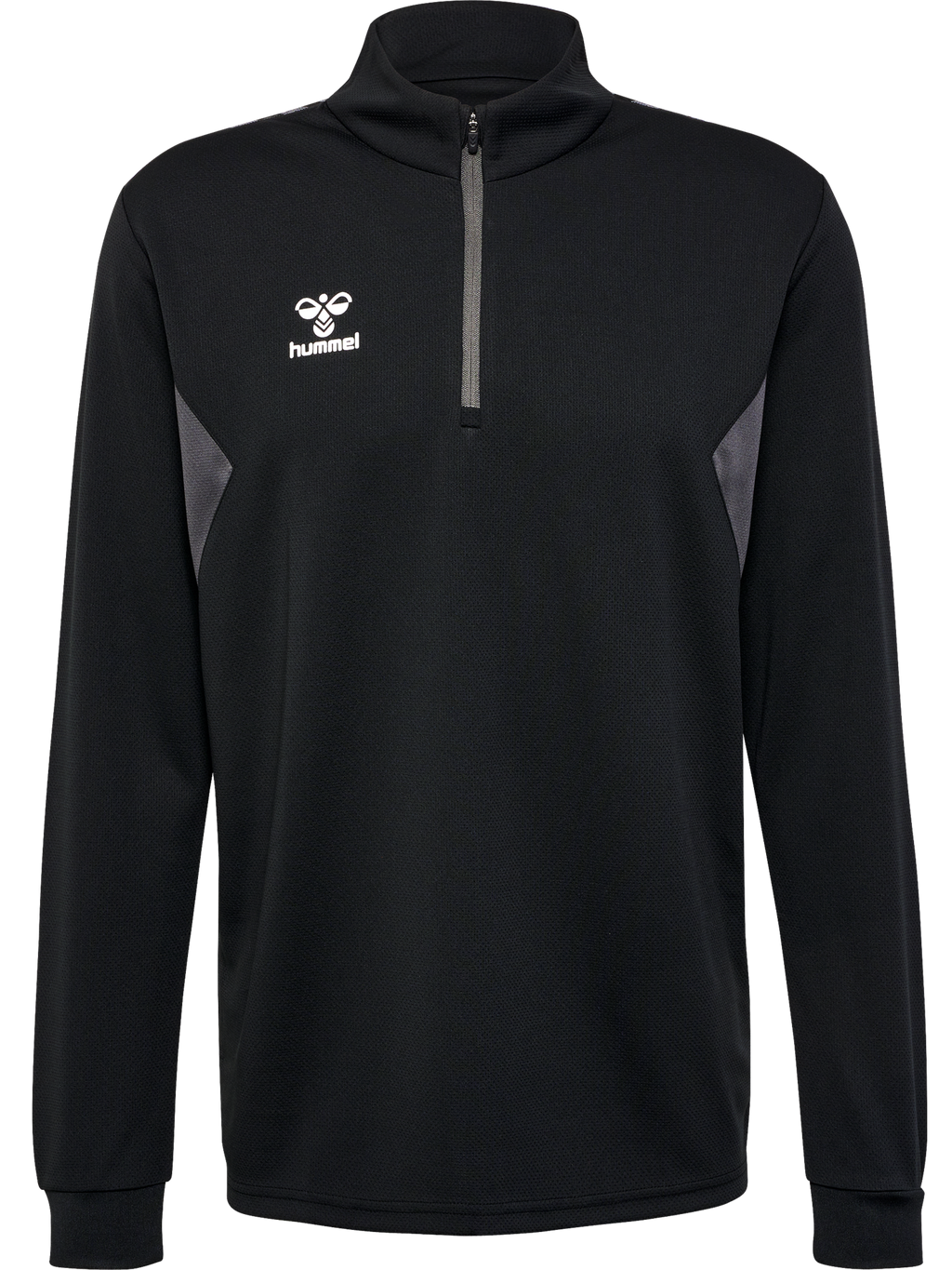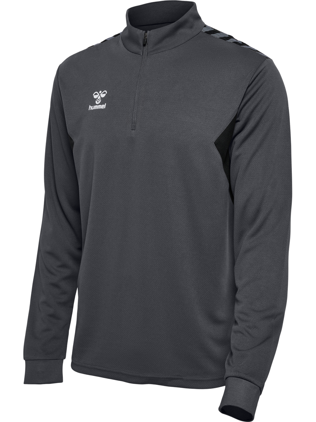 La sudadera hummel Authentic 24 con media cremallera está confeccionada con poliéster 100% reciclado para formar un tejido jacquard y luce la icónica cinta en forma de V de hummel en los hombros. Esta prenda de manga larga con media cremallera de hummel cuenta con una solapa protectora de dos piezas para evitar irritaciones y puños en las mangas para proteger del frío y mantener el calor.