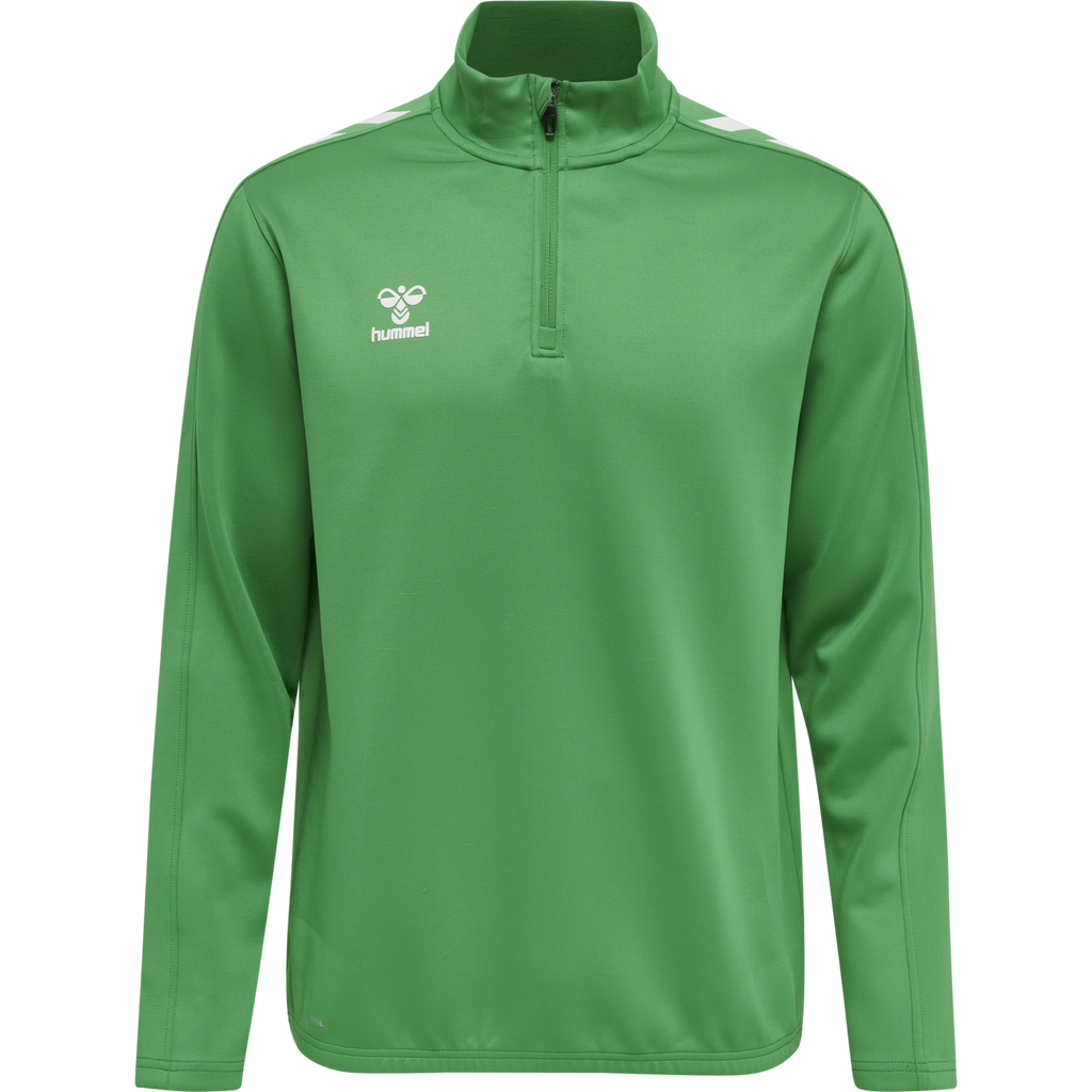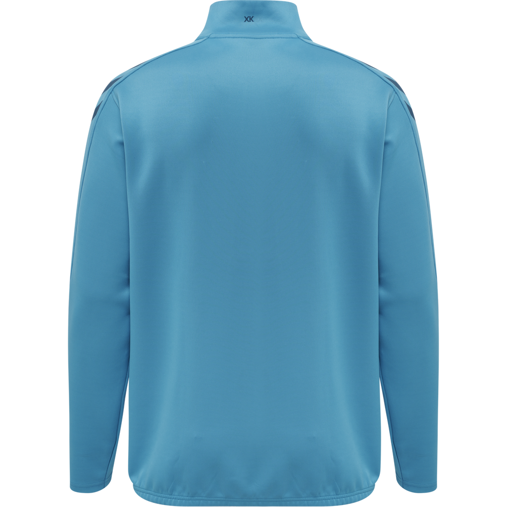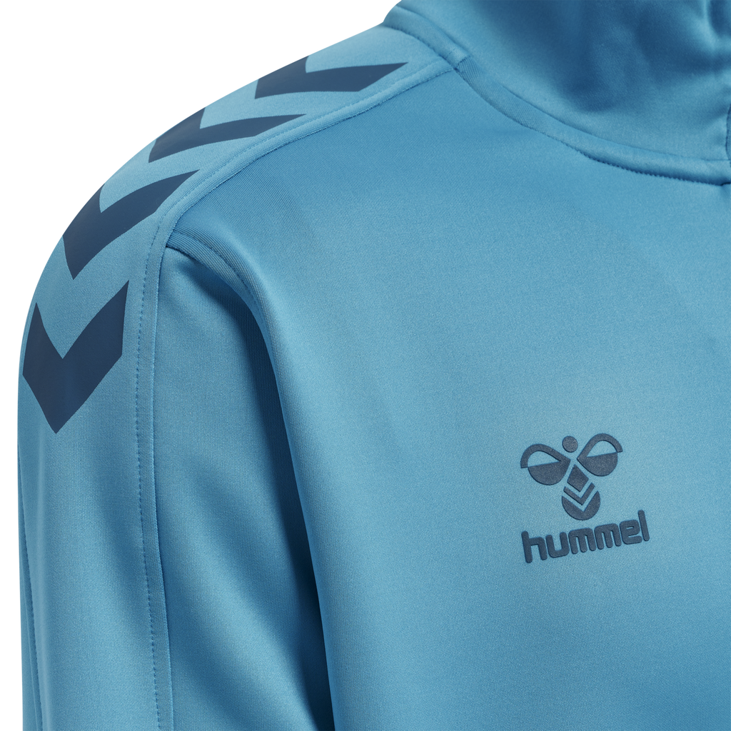 La chaqueta hummel Core XK Half Zip Poly Sweat (para jóvenes) está confeccionada con un tejido transpirable y cómodo que incorpora la tecnología BEECOOL® para una mayor transpirabilidad y un secado rápido. Cuenta con un cuello alto, media cremallera y protección para la misma, ofreciendo una mayor cobertura durante el entrenamiento y el juego. Su diseño minimalista prioriza el rendimiento y la comodidad con una estética moderna. El bajo incluye elástico para un ajuste ceñido al cuerpo.