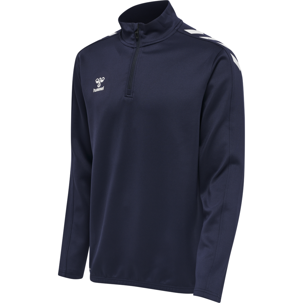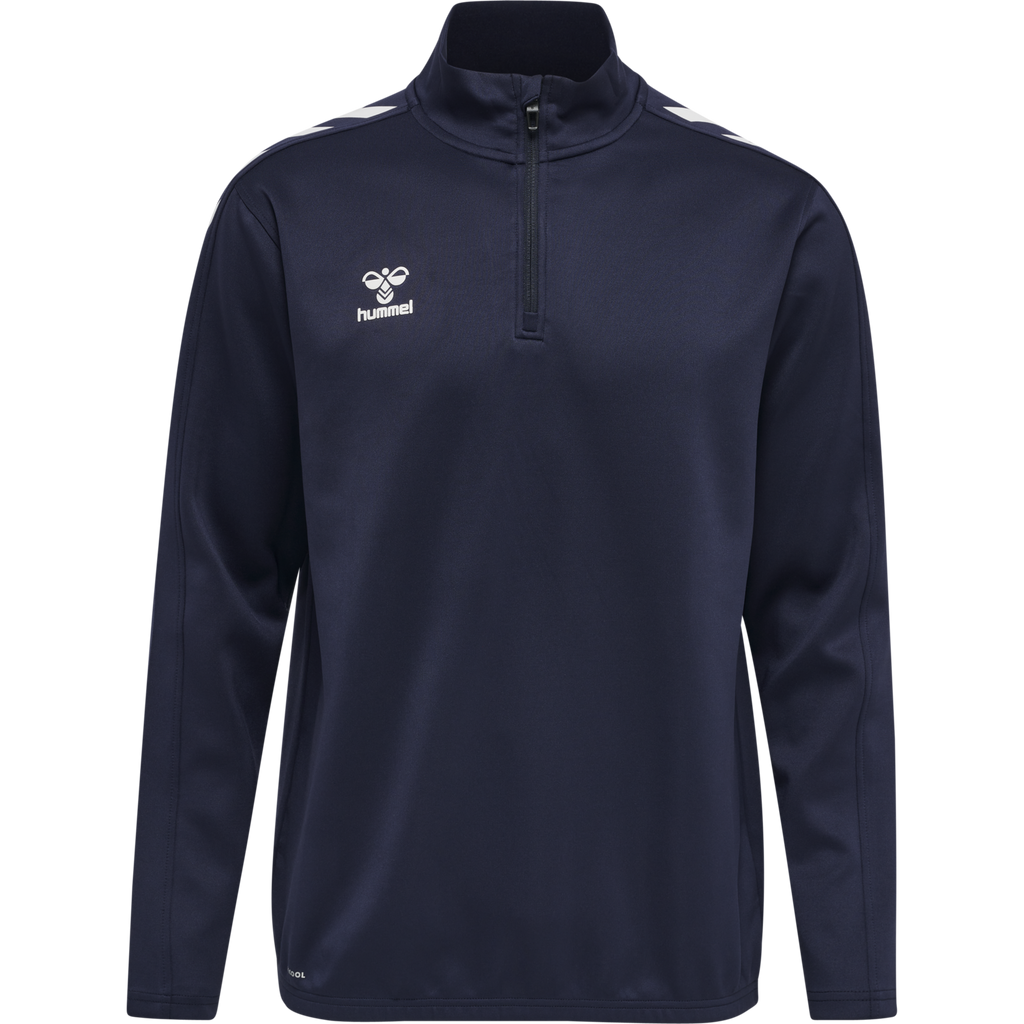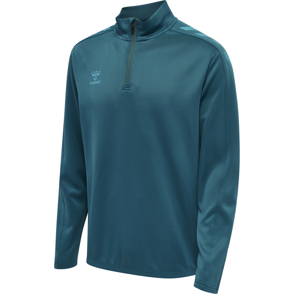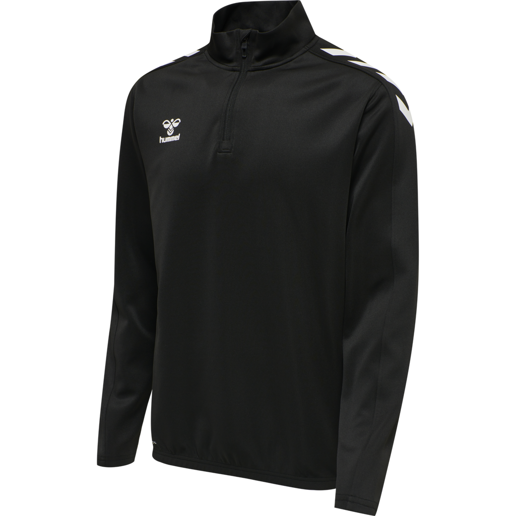 La chaqueta hummel Core XK Half Zip Poly Sweat (para jóvenes) está confeccionada con un tejido transpirable y cómodo que incorpora la tecnología BEECOOL® para una mayor transpirabilidad y un secado rápido. Cuenta con un cuello alto, media cremallera y protección para la misma, ofreciendo una mayor cobertura durante el entrenamiento y el juego. Su diseño minimalista prioriza el rendimiento y la comodidad con una estética moderna. El bajo incluye elástico para un ajuste ceñido al cuerpo.