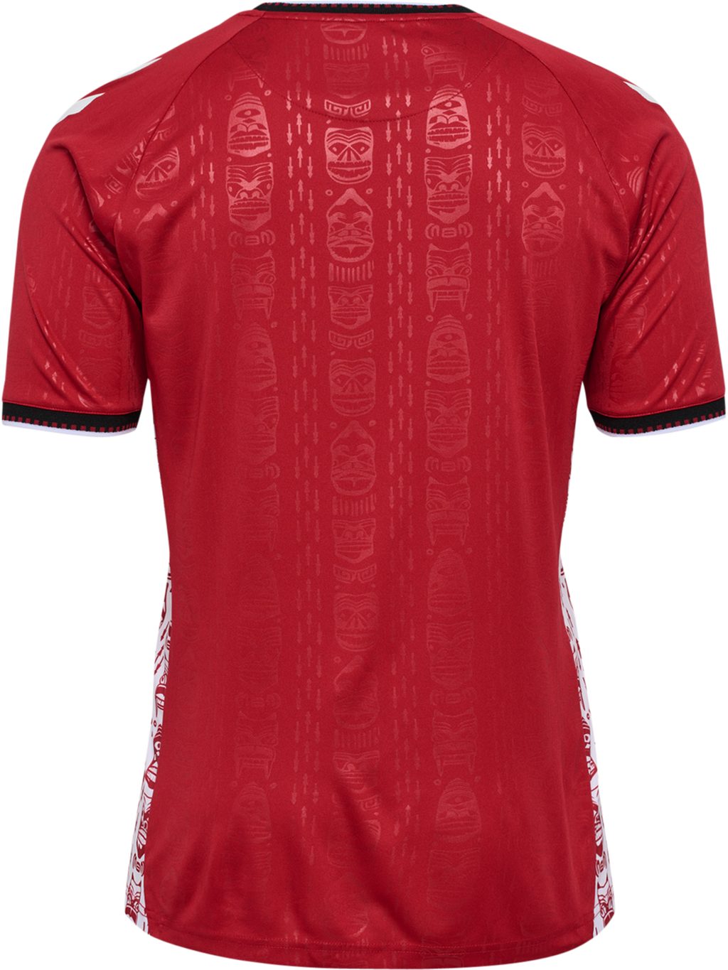 La camiseta de local de Groenlandia 2025 de hummel es tan única como elegante. Un homenaje al singular patrimonio cultural de la isla, la camiseta luce un patrón grabado con tupilaks: pequeñas figuras intrincadamente talladas de la cultura inuit. Entre ellas se encuentran los tuukkaqer, que representan la punta de una lanza masculina tradicional y simbolizan la masculinidad moderna. El ribete y el cuello están adornados con motivos avittatter, elementos presentes también en los trajes nacionales y el arte local. Este diseño entrelaza importantes motivos culturales con la historia y el espíritu únicos del pueblo groenlandés. Esta joya es imprescindible para cualquier groenlandés o coleccionista de camisetas.