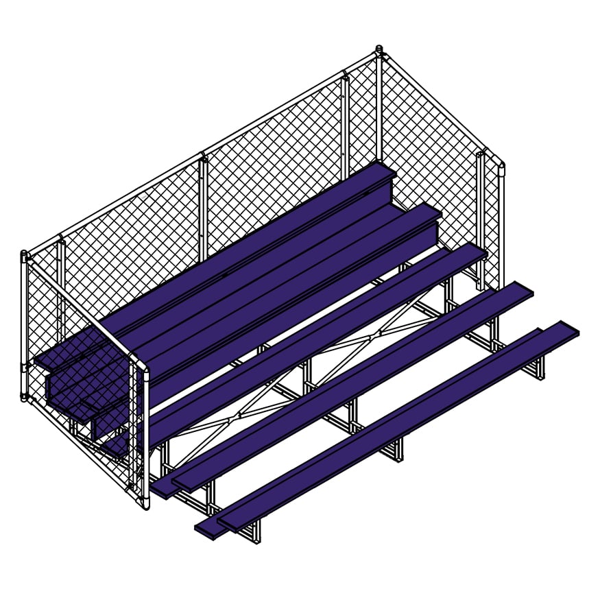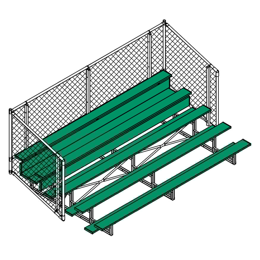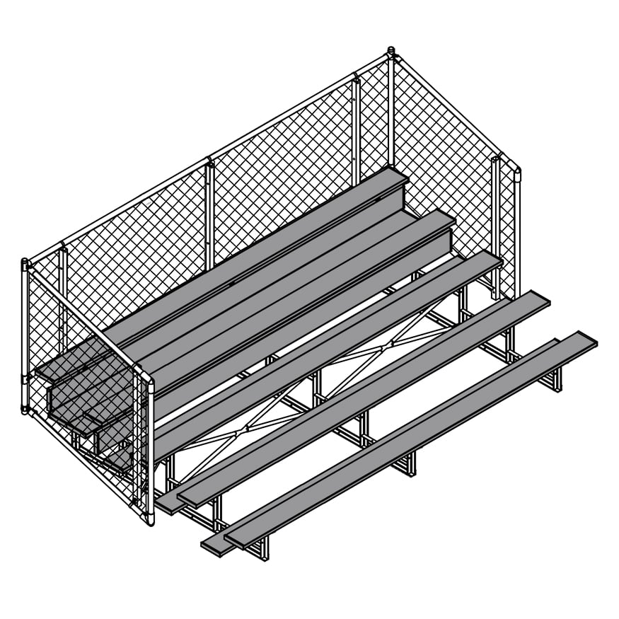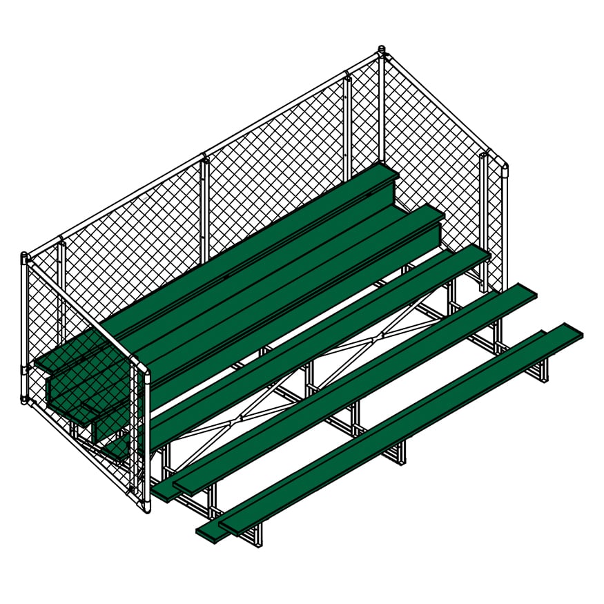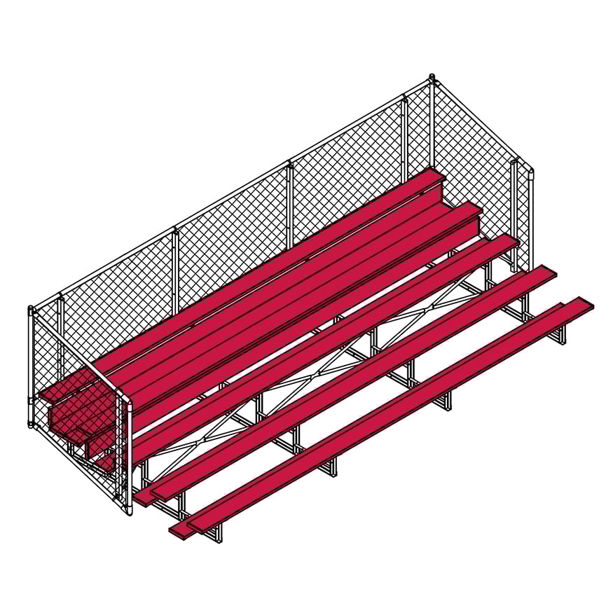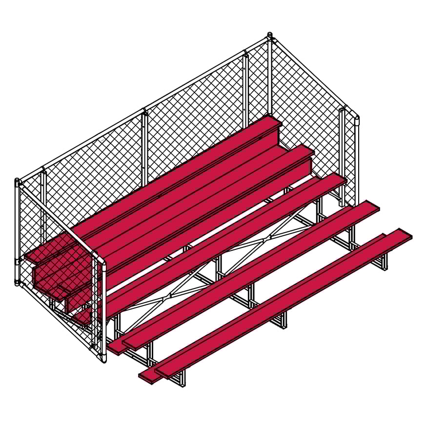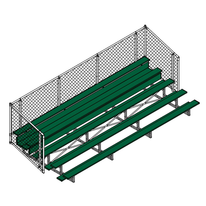 Esta grada cerrada Jaypro para fútbol (5 filas - tablón de 1 pie con barandilla de malla metálica) es perfecta para campos deportivos y complejos al aire libre. Su valla de malla metálica en los laterales y la parte trasera proporciona una seguridad superior, mientras que los refuerzos dobles y la barra estabilizadora trasera aumentan su resistencia. Fabricada con una estructura inferior de acero galvanizado, esta grada se puede adaptar para albergar a 50 personas (15 pies), 62 personas (21 pies) y 80 personas (27 pies). Disfrute de la máxima comodidad y apoyo mientras anima a su equipo con la resistente grada cerrada Jaypro para fútbol (5 filas - tablón de 1 pie con barandilla de malla metálica) .