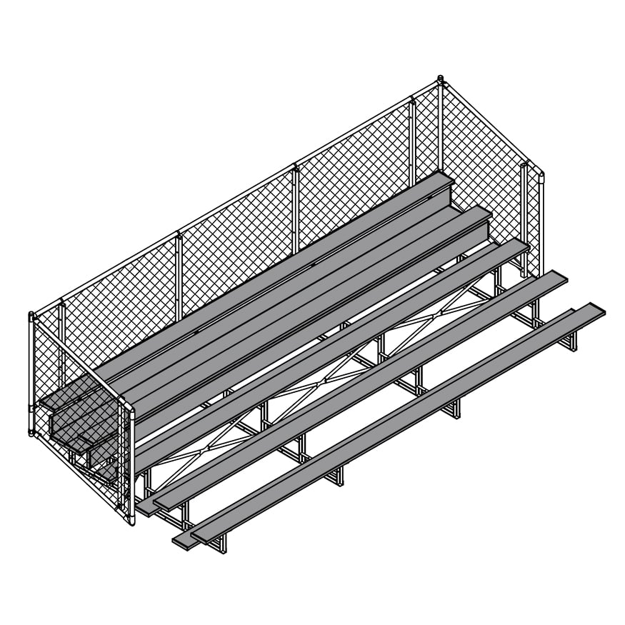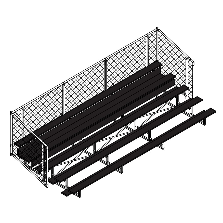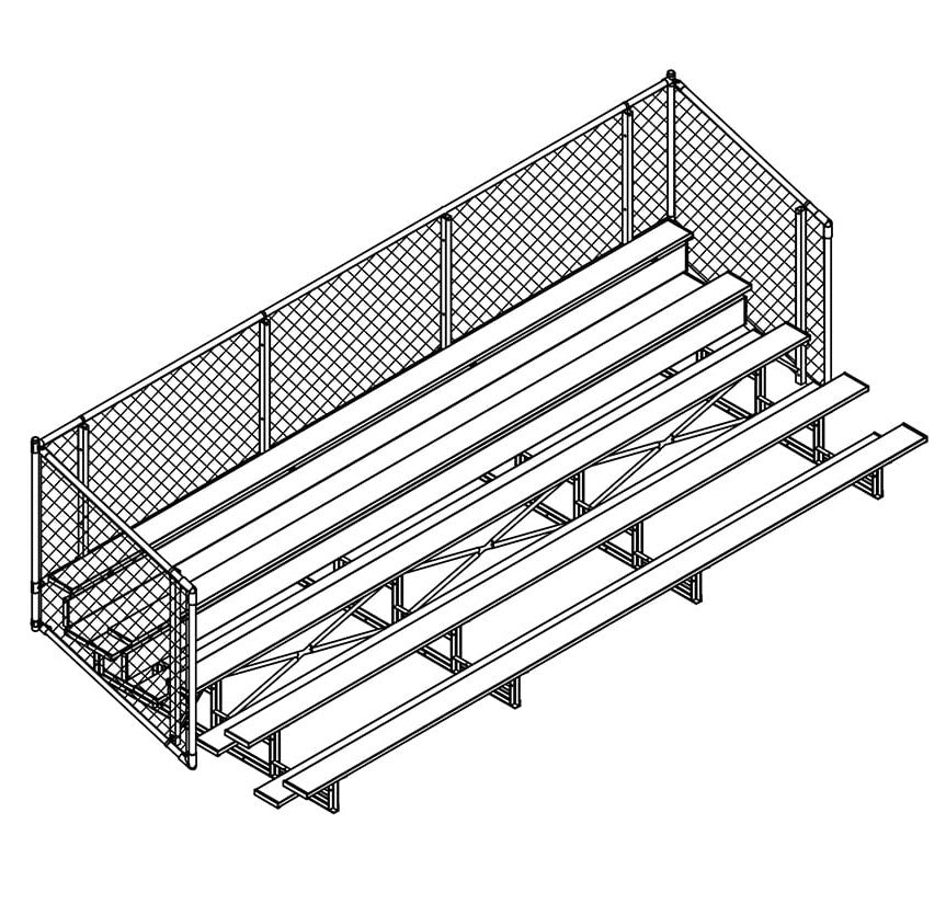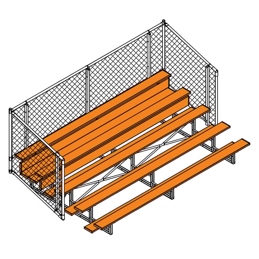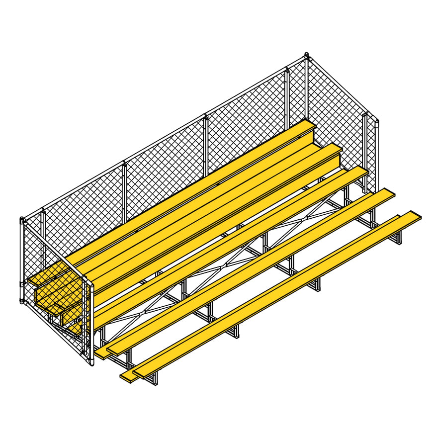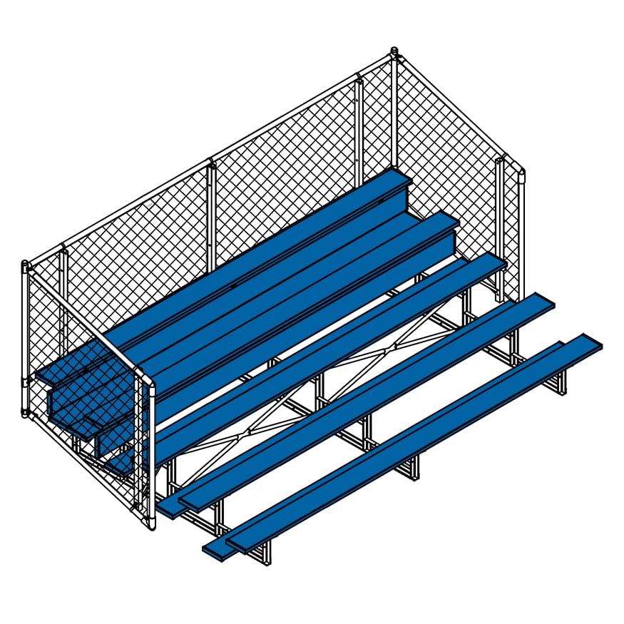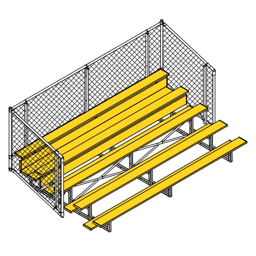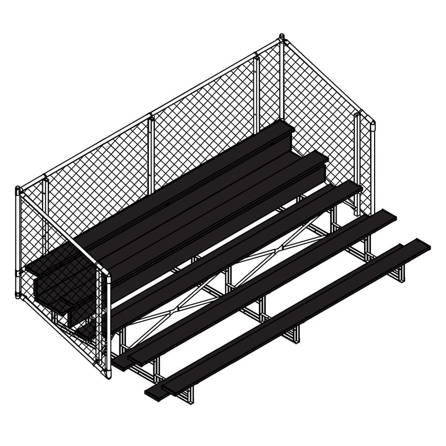 Esta grada cerrada Jaypro para fútbol (5 filas - tablón de 1 pie con barandilla de malla metálica) es perfecta para campos deportivos y complejos al aire libre. Su valla de malla metálica en los laterales y la parte trasera proporciona una seguridad superior, mientras que los refuerzos dobles y la barra estabilizadora trasera aumentan su resistencia. Fabricada con una estructura inferior de acero galvanizado, esta grada se puede adaptar para albergar a 50 personas (15 pies), 62 personas (21 pies) y 80 personas (27 pies). Disfrute de la máxima comodidad y apoyo mientras anima a su equipo con la resistente grada cerrada Jaypro para fútbol (5 filas - tablón de 1 pie con barandilla de malla metálica) .