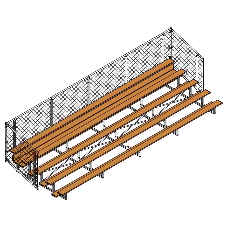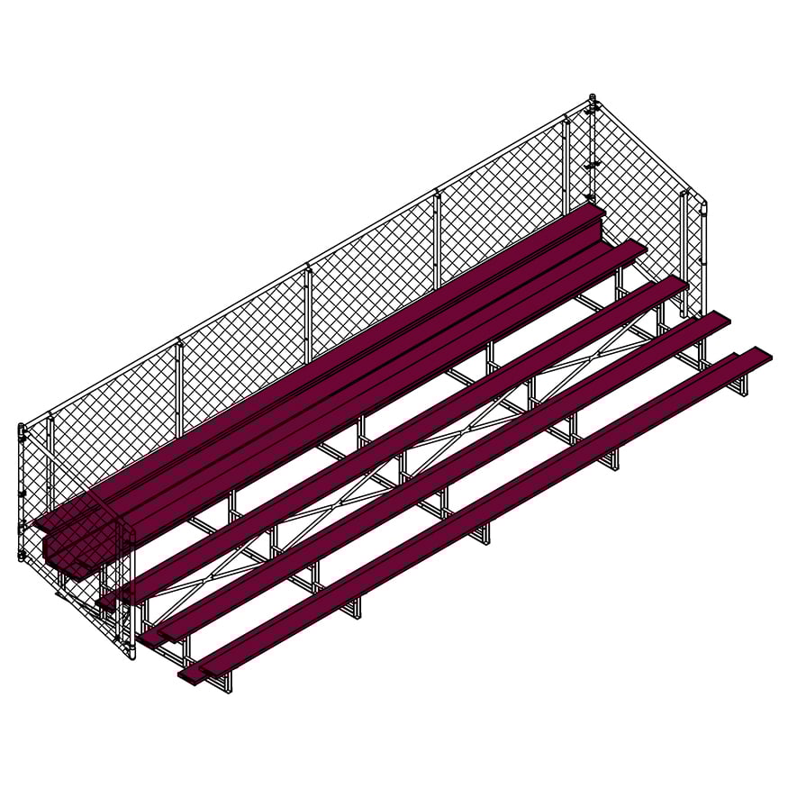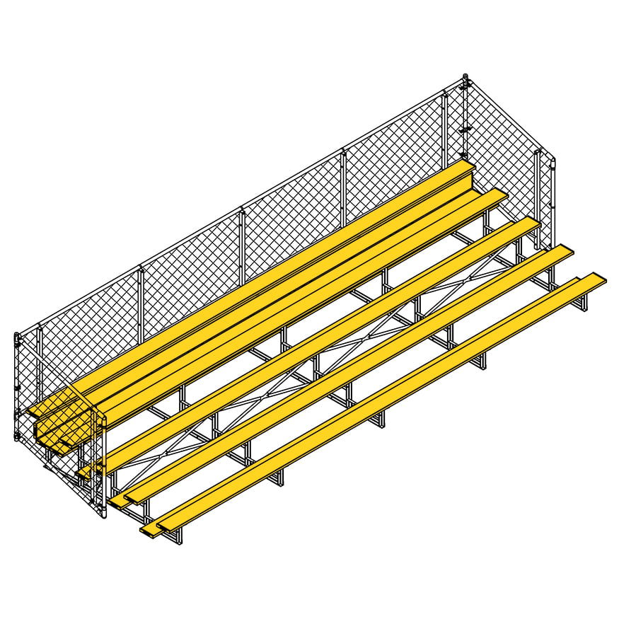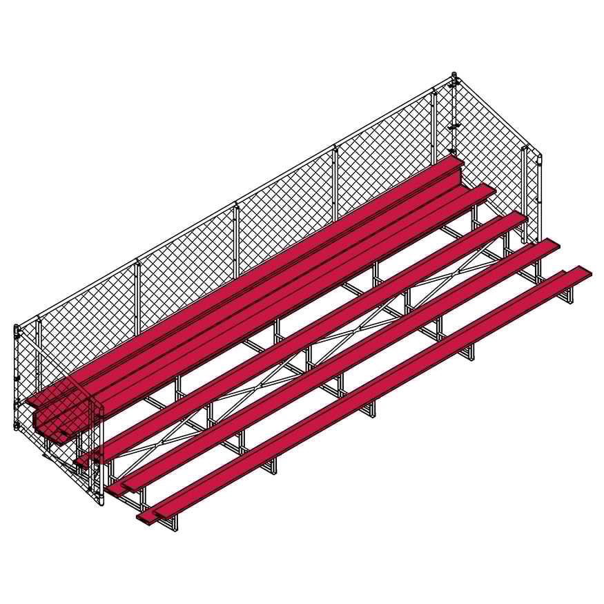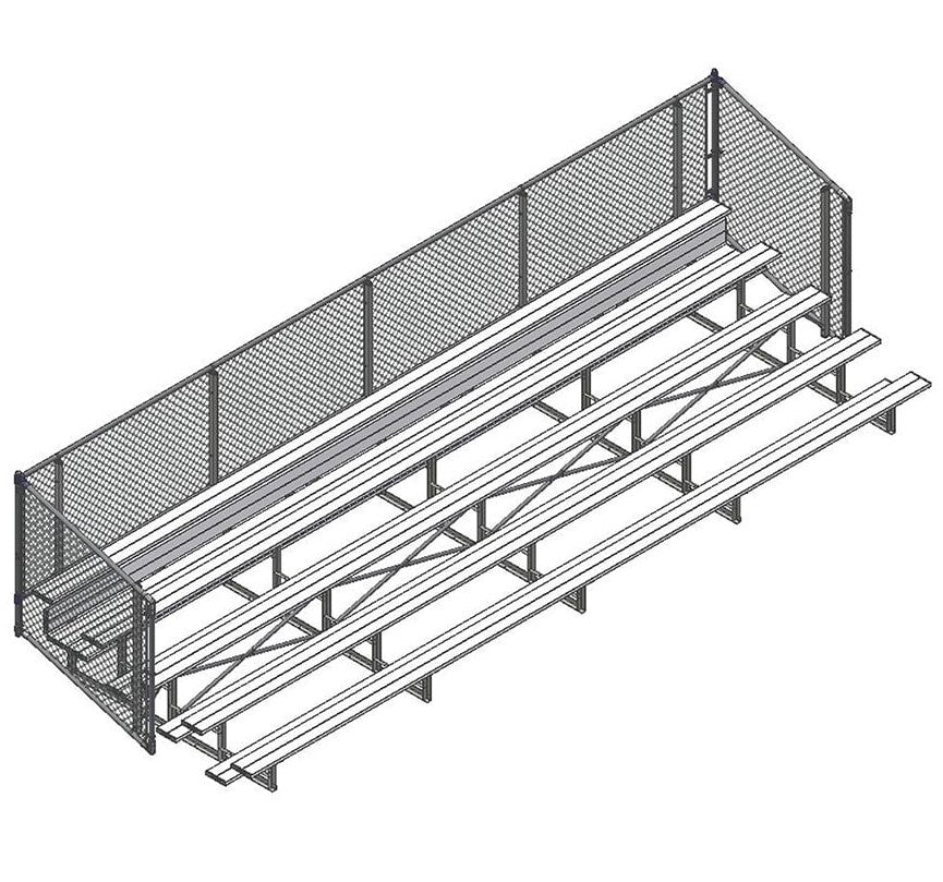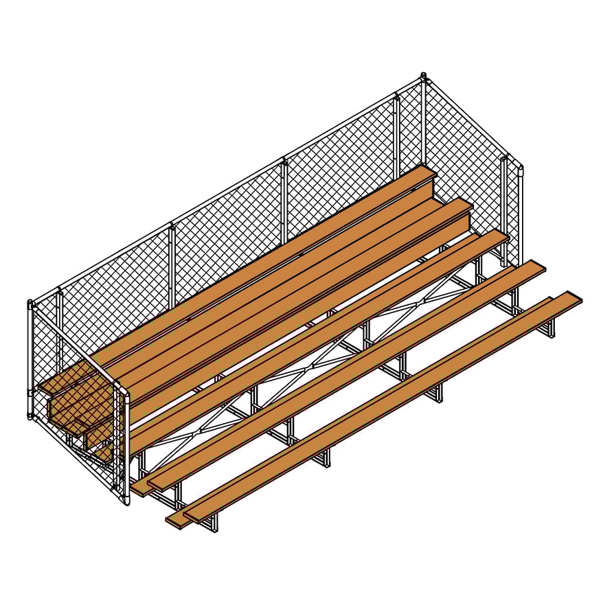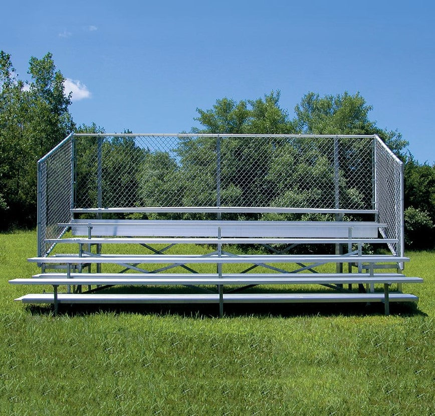 Esta grada cerrada Jaypro para fútbol (5 filas - tablón de 1 pie con barandilla de malla metálica) es perfecta para campos deportivos y complejos al aire libre. Su valla de malla metálica en los laterales y la parte trasera proporciona una seguridad superior, mientras que los refuerzos dobles y la barra estabilizadora trasera aumentan su resistencia. Fabricada con una estructura inferior de acero galvanizado, esta grada se puede adaptar para albergar a 50 personas (15 pies), 62 personas (21 pies) y 80 personas (27 pies). Disfrute de la máxima comodidad y apoyo mientras anima a su equipo con la resistente grada cerrada Jaypro para fútbol (5 filas - tablón de 1 pie con barandilla de malla metálica) .