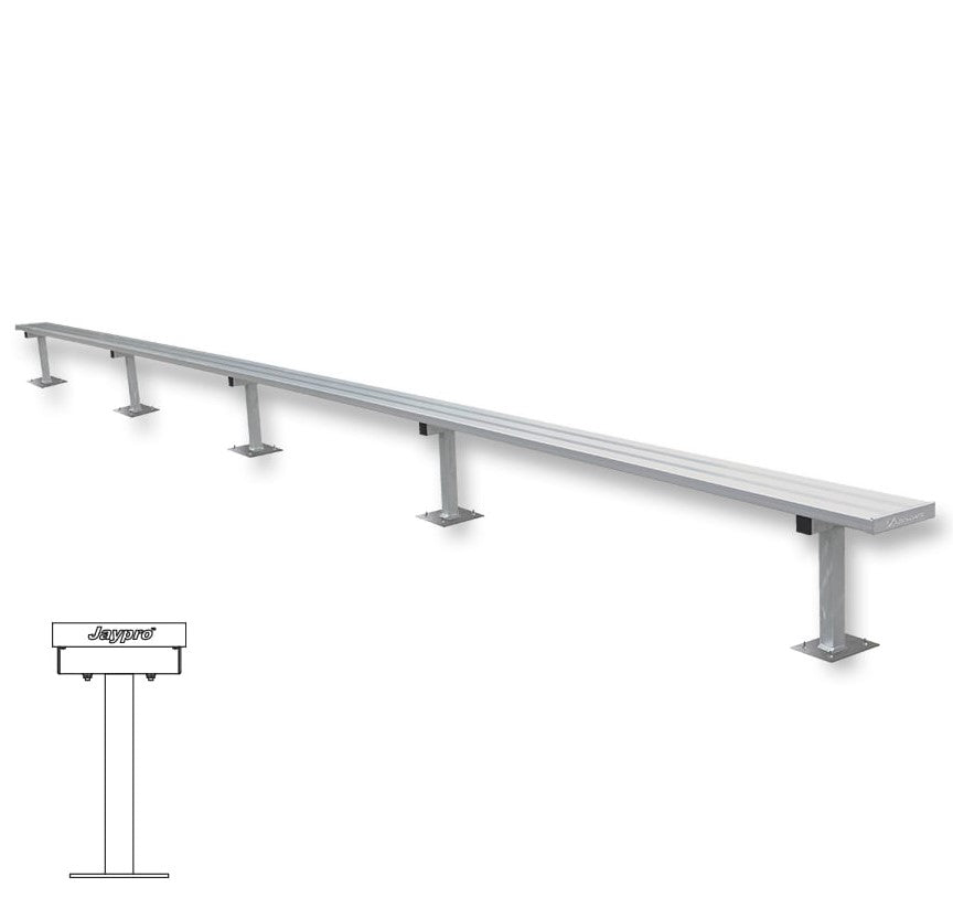 Desata todo tu potencial en la cancha con el confiable y resistente a la corrosión Banco de Fútbol Jaypro (Montaje en Superficie) . Diseñado para campos deportivos, parques públicos y complejos deportivos, este banco cuenta con una estructura inferior de acero galvanizado reforzado y opciones de tamaño y recubrimiento en polvo personalizables. Con capacidad para 5 asientos a 2,3 m, 10 asientos a 4,6 m, 15 asientos a 6,4 m y 17 asientos a 8,2 m sin respaldo, es la opción ideal para jugadores exigentes. No te conformes con menos: elige el Banco de Fútbol Jaypro (Montaje en Superficie) .