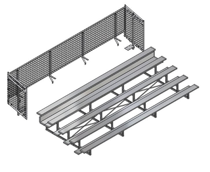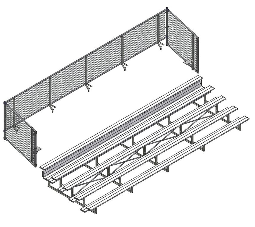 - Cerramiento de malla metálica para gradas con asientos de más de 30 pulgadas de altura (compatible con la mayoría de las marcas).