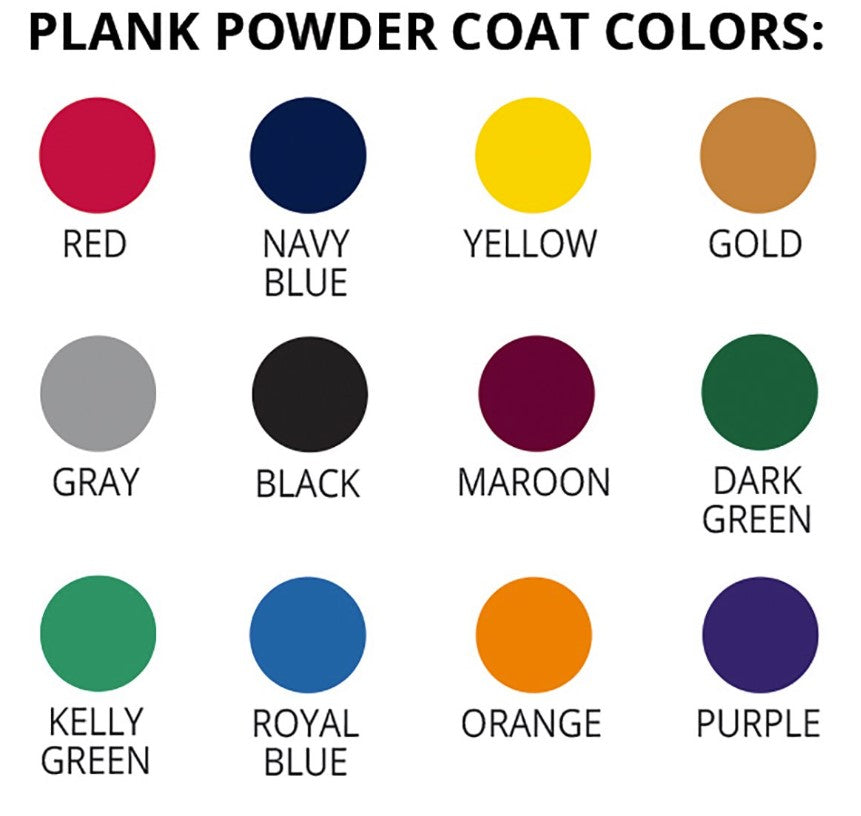 - Colores de tablones: Rojo | Azul marino | Amarillo | Dorado | Gris | Negro | Granate | Verde oscuro | Verde Kelly | Azul marino | Naranja | Morado
