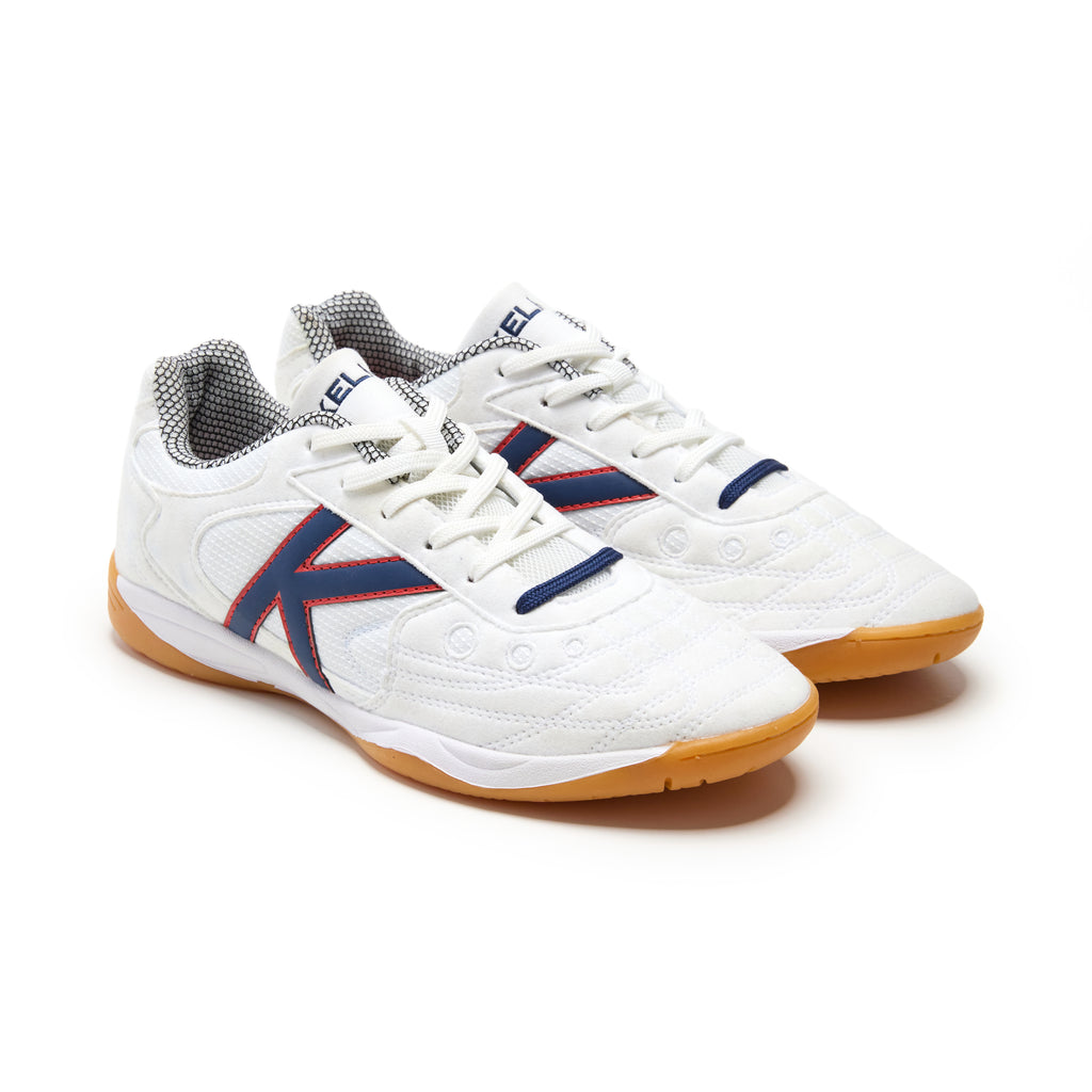 Las zapatillas de fútbol sala Kelme Indoor Copa (blancas) ofrecen un diseño clásico combinado con un empeine de ante sintético de alto rendimiento que garantiza durabilidad, flexibilidad y una comodidad ligera. Reconocidas como unas zapatillas de primera categoría para fútbol sala, las Kelme Indoor Copa destacan por su flexibilidad y ligereza. Su suela de goma de perfil bajo, equipada con un punto de pivote, facilita los cambios de dirección rápidos, mientras que los diferentes patrones de la suela proporcionan un agarre y una durabilidad óptimos, adaptados a las distintas zonas de desgaste. Ideales para los jugadores más rápidos y ágiles que buscan un rendimiento superior en la pista.