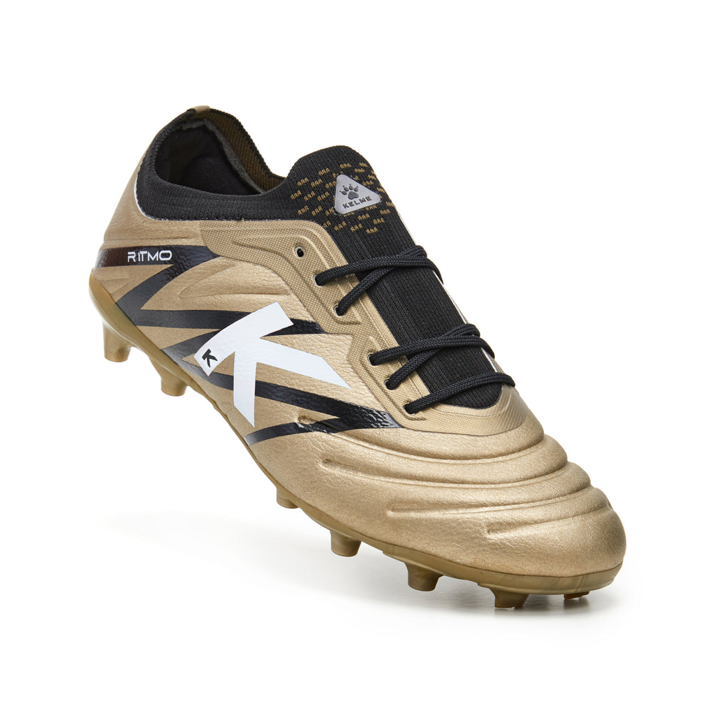 Las botas de fútbol Kelme Ritmo MG (doradas) ofrecen comodidad y ligereza, además de un excelente control del balón. Su confección en microfibra y la puntera ranurada te ayudan a disparar con precisión, mientras que el cuello de punto y el talón reforzado brindan sujeción y estabilidad. La versátil suela MG ofrece un buen rendimiento en diversas superficies, permitiéndote jugar con confianza y agilidad. Mejora tu juego con unas botas diseñadas para mantenerte rápido y con el control.