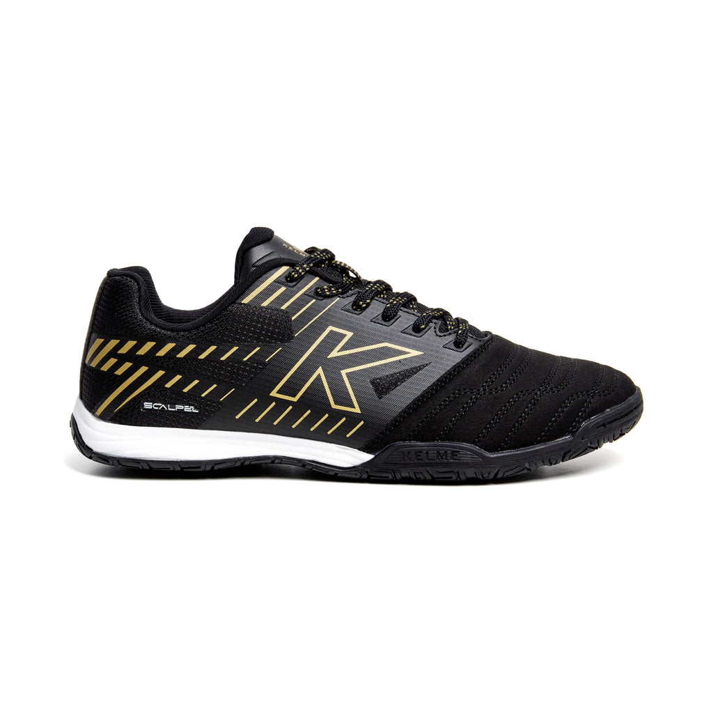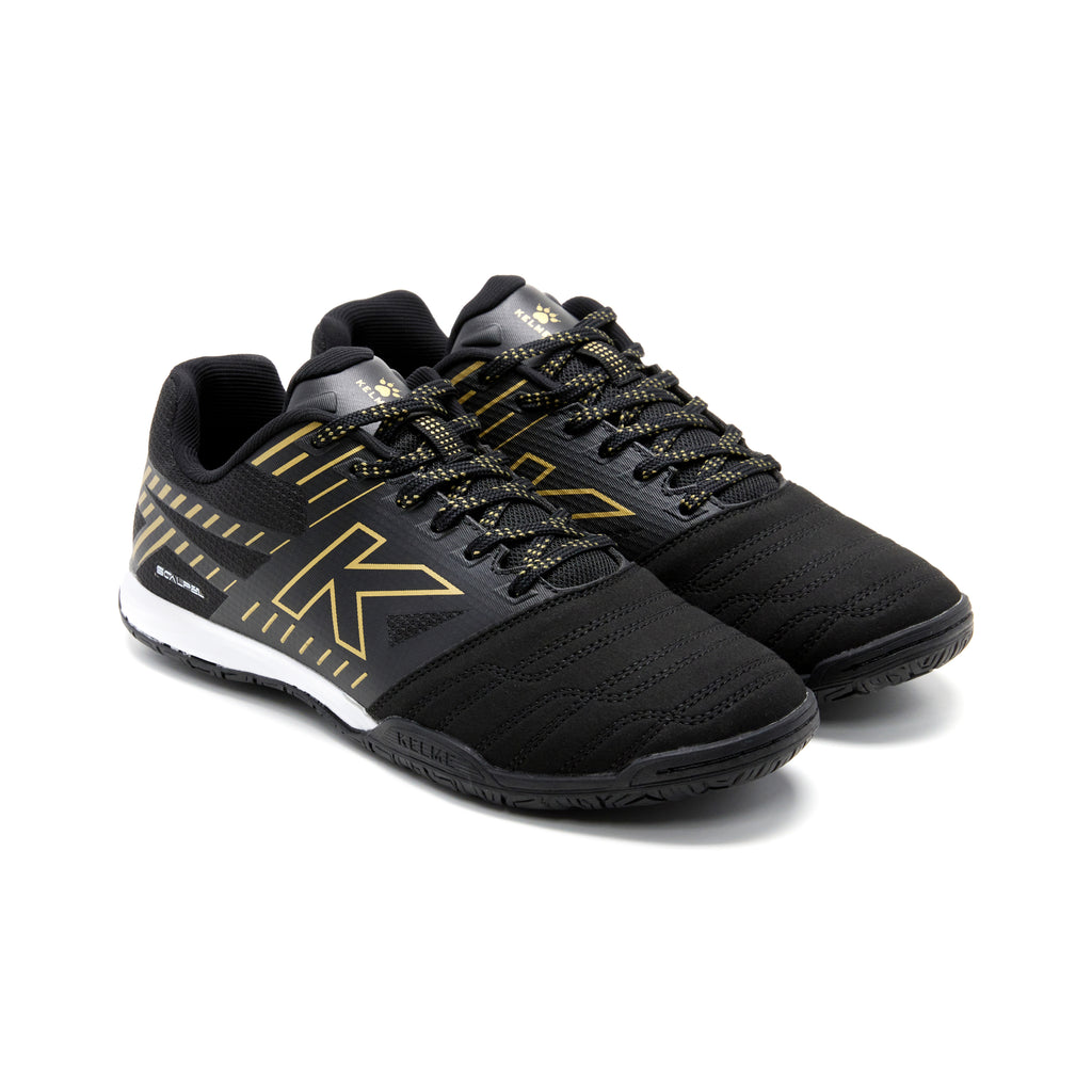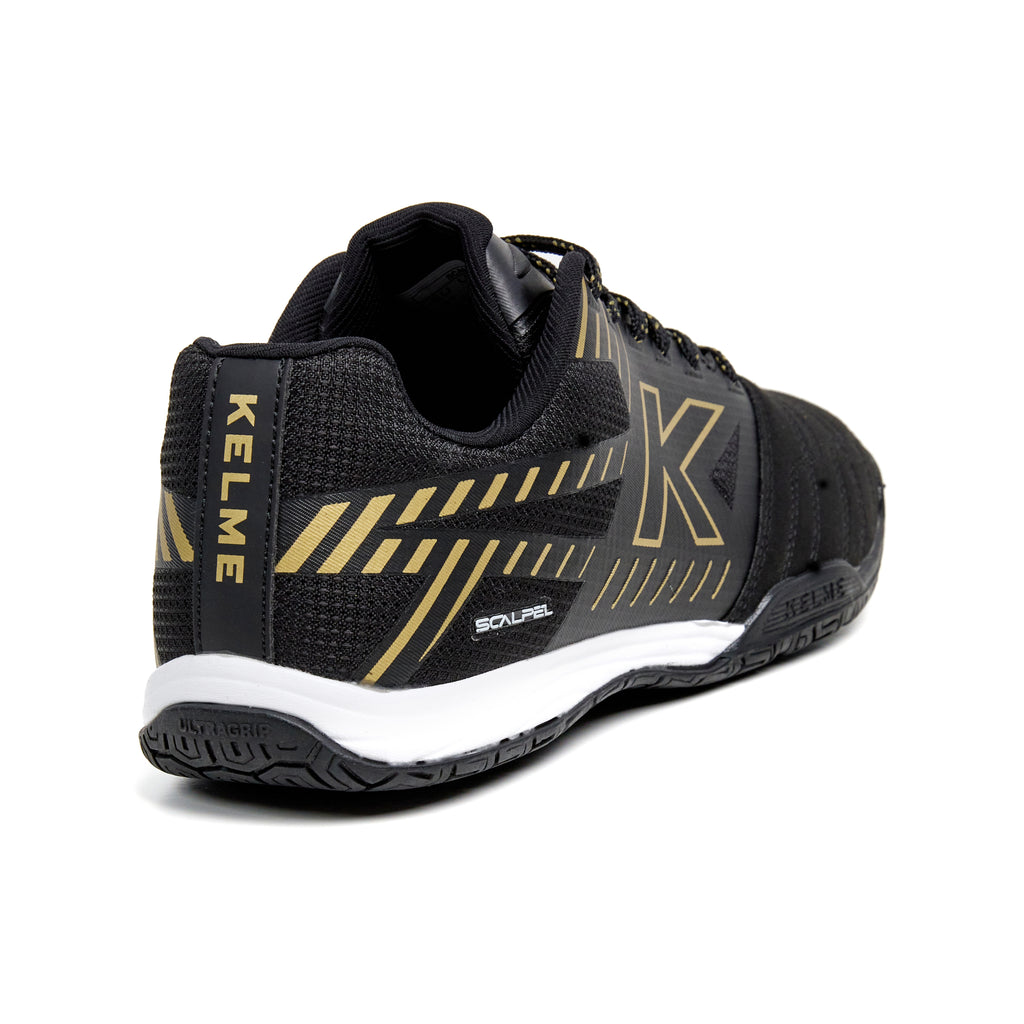 Las zapatillas de fútbol sala Kelme Scalpel (negro/dorado) ofrecen la combinación perfecta de estilo y rendimiento para fútbol sala y fútbol indoor. Diseñadas para jugadores que buscan un calzado ligero con una amortiguación superior, estas zapatillas cuentan con una malla técnica transpirable y una plantilla especial de diseño exclusivo fabricada con poliuretano y caucho de primera calidad. Diseñadas para brindar comodidad y agilidad, son ideales para su uso en pistas cubiertas homologadas, ayudándote a destacar en cada partido.