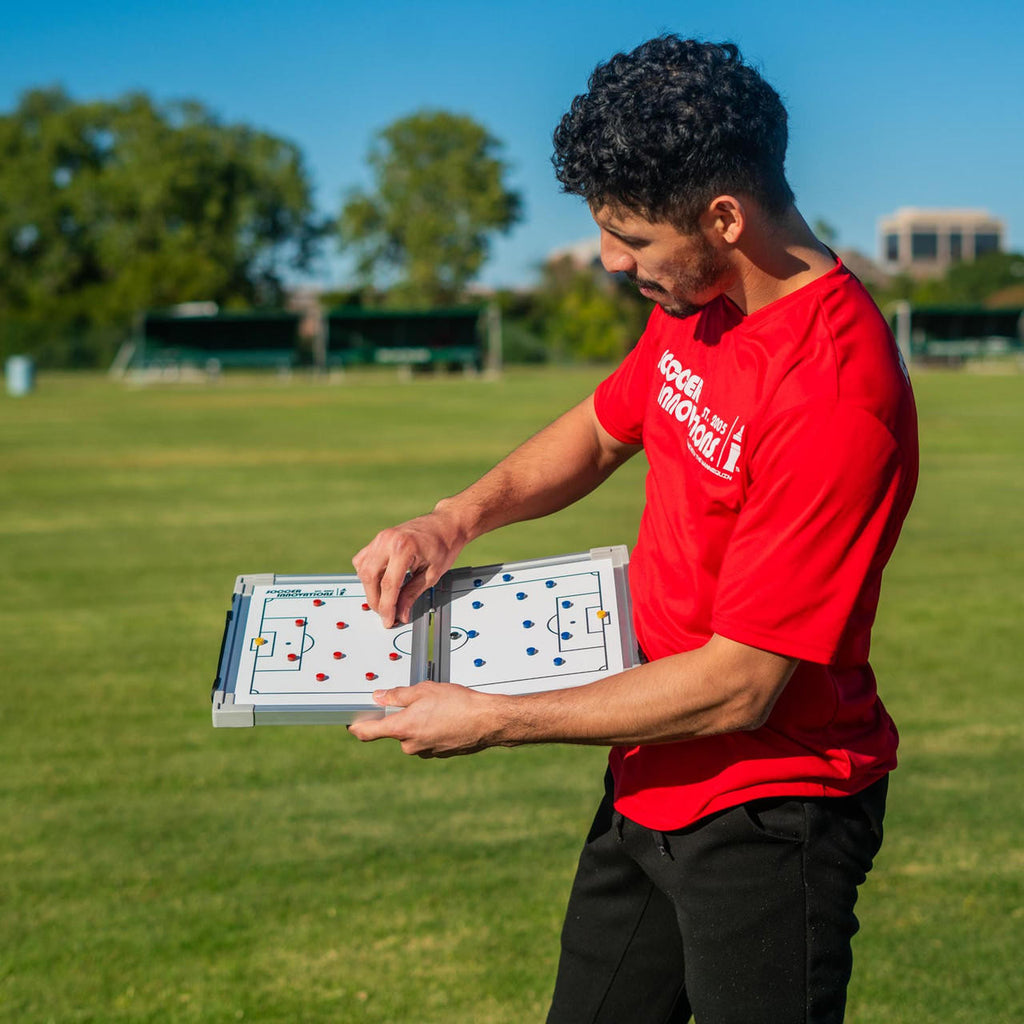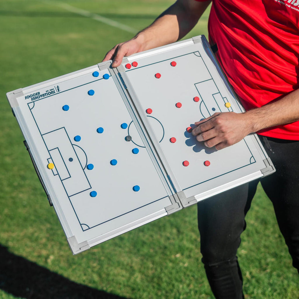 La pizarra táctica magnética de Soccer Innovations (disponible en 3 tamaños) es una herramienta única, compacta y duradera para el entrenamiento y la práctica de tácticas en cualquier lugar. Su visión completa del campo y sus laterales divididos permiten un análisis táctico detallado, mientras que los marcadores, el bolígrafo y el borrador incluidos la convierten en un elemento versátil e indispensable para cualquier entrenador. Lleva tu entrenamiento al siguiente nivel con la pizarra táctica magnética de Soccer Innovations (disponible en 3 tamaños) .