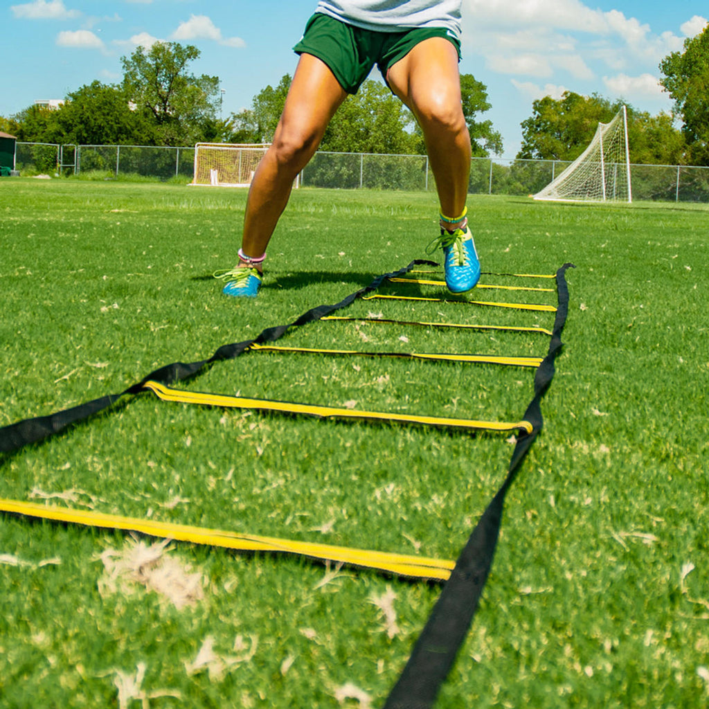 Transforma tu juego con la Escalera de Velocidad de Soccer Innovations : la herramienta definitiva para el entrenamiento de velocidad, equilibrio y agilidad. Diseñada para todas las edades y niveles, esta escalera ligera de nailon con inserciones de aluminio mejorará tu velocidad, equilibrio, coordinación y resistencia. Olvídate de los peldaños rotos y elige entre el tamaño mini o estándar para un rendimiento óptimo.