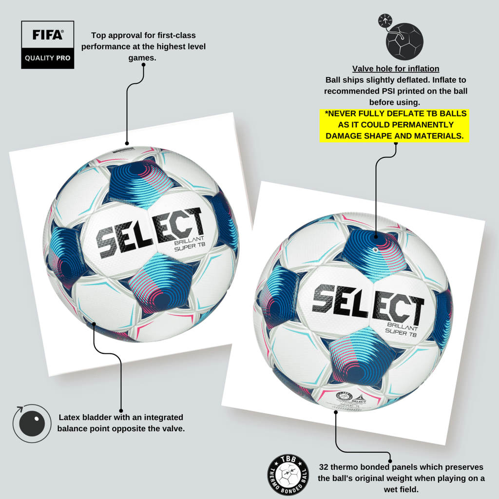 - Un balón de fútbol superior, fabricado con materiales de alta calidad cuidadosamente seleccionados, con las características de un balón SELECT clásico.