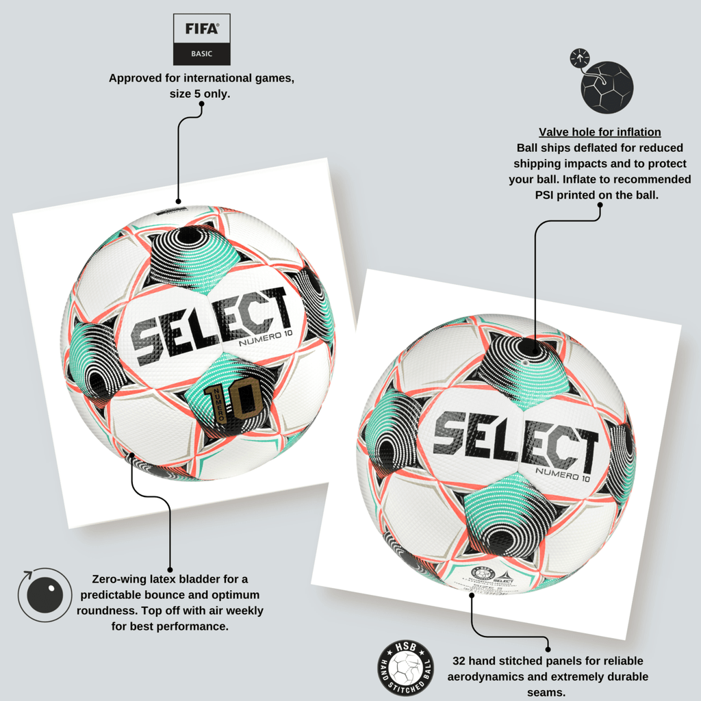 - Incluye 12 balones de fútbol Select Numero 10 v25