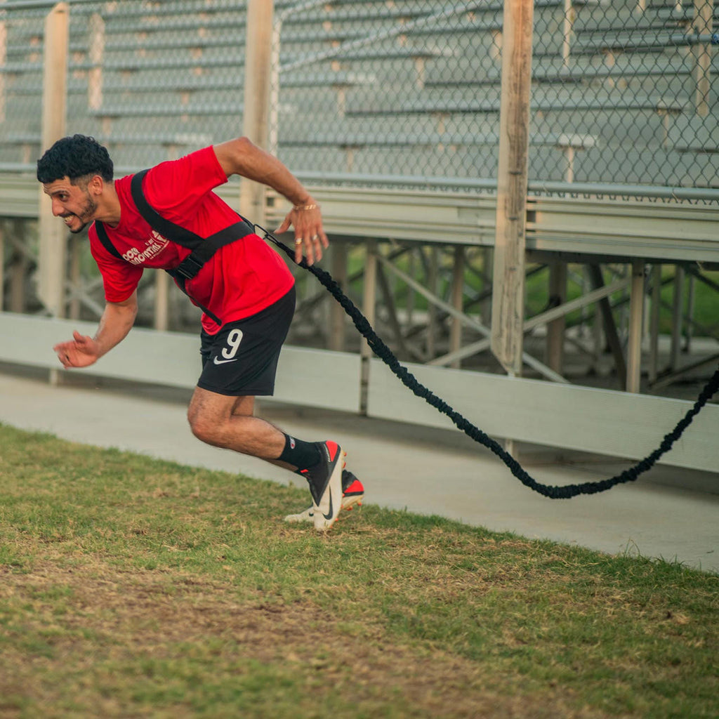 La banda elástica de entrenamiento de velocidad y resistencia individual de Soccer Innovations es una herramienta versátil para entrenar solo o en pareja. Este producto revolucionario está diseñado para mejorar tu resistencia, velocidad, potencia y salto vertical, y se puede fijar fácilmente a una portería de fútbol, un poste de valla u otro objeto fijo. ¡No pierdas la oportunidad de mejorar tus fibras musculares de contracción rápida y tu agilidad visual con la banda elástica de entrenamiento de velocidad y resistencia individual de Soccer Innovations !