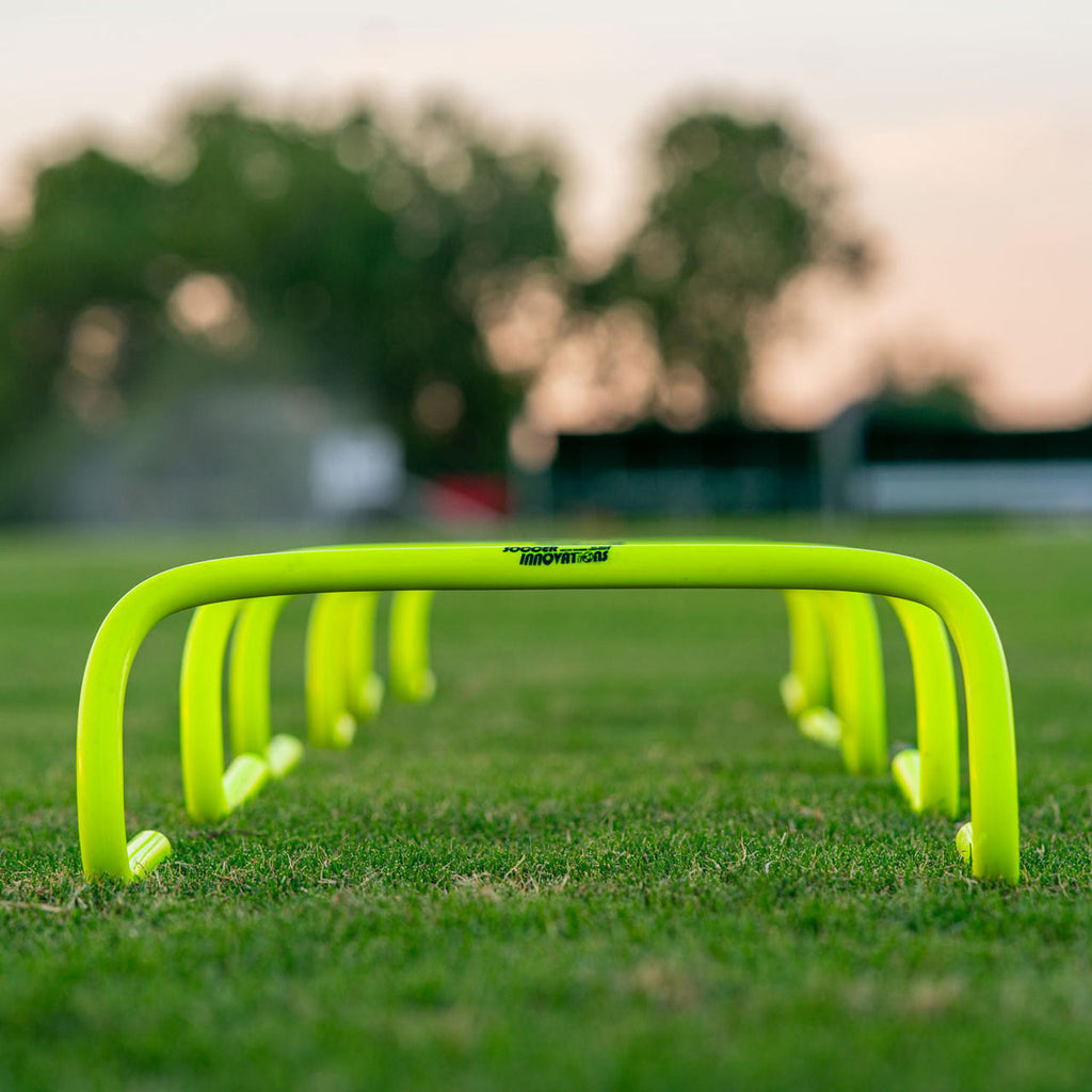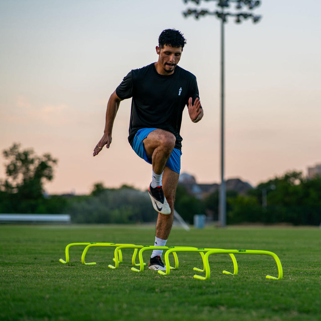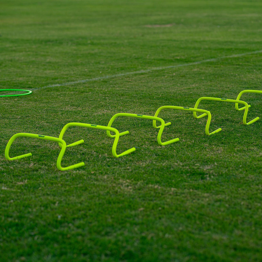 El entrenamiento de velocidad, agilidad y rapidez (VAR) se ha consolidado como una parte fundamental de la formación del futbolista moderno. Estas vallas mejoran la velocidad de juego de pies de cualquier jugador. Disponibles en juegos de 6, 9 o 12 pulgadas de altura para una mayor variedad de movimientos.