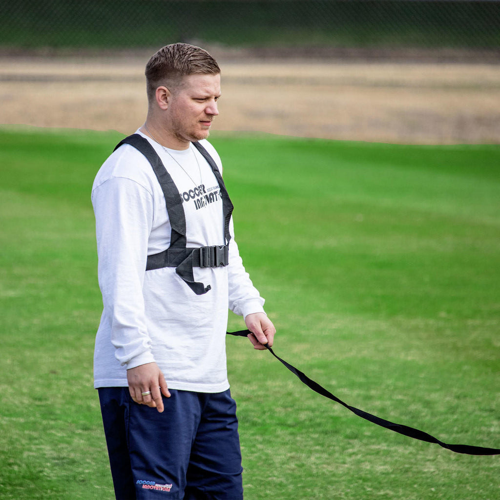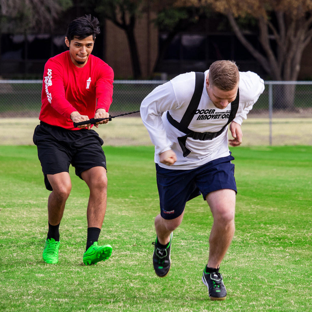 El cinturón de arnés Speed Resistor de Soccer Innovations es una herramienta revolucionaria que mejora la fuerza de la parte superior e inferior del cuerpo, así como la velocidad, la agilidad y la rapidez (SAQ). ¡Es como tener un trineo portátil sin la molestia de cargar pesas! Al entrenar con un compañero, entrenador o padre/madre, el arnés pectoral acolchado de neopreno crea la resistencia perfecta para el jugador. Además, el asa acolchada para dos manos al final de la correa garantiza la máxima comodidad durante los entrenamientos. Mejora tu juego con el cinturón de arnés Speed Resistor de Soccer Innovations .
