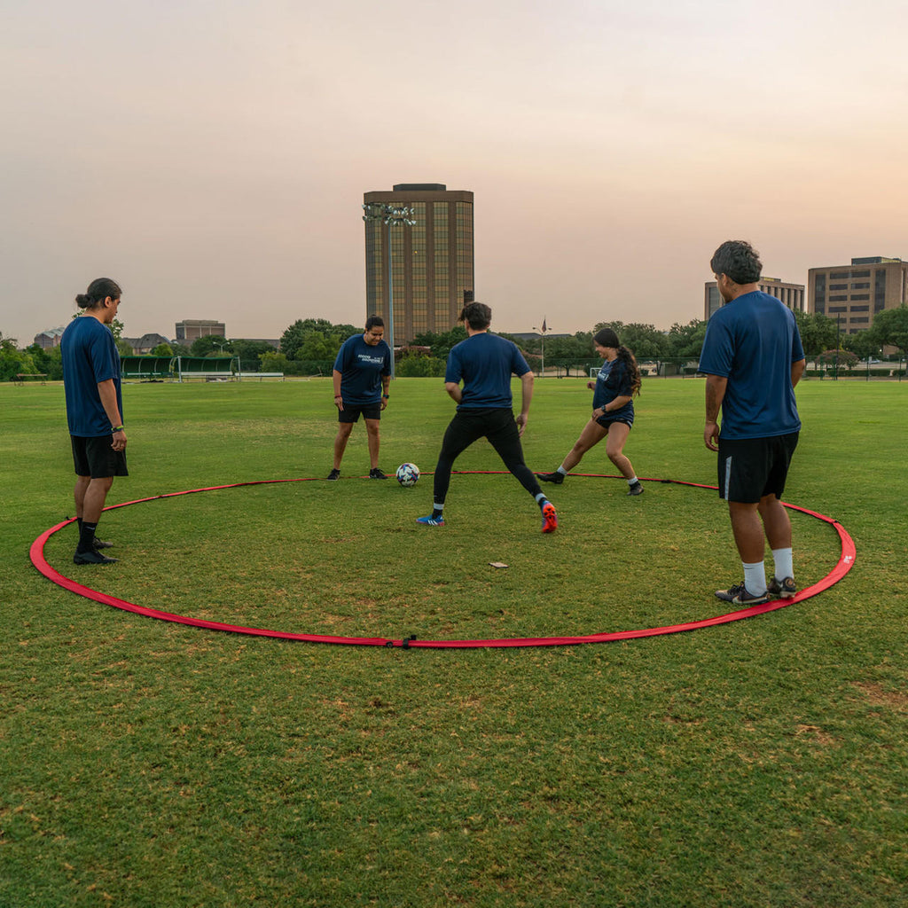 Mejora la posesión del balón en espacios reducidos de tus jugadores con el Anillo Tiki Taka de Soccer Innovations . Los obliga a pensar rápido y encontrar el siguiente pase bajo presión. También conocido como Rondo, este anillo ayuda a desarrollar el primer toque, la recepción y el pase, la velocidad y la percepción espacial. A diferencia de los conos, permanece fijo y viene con una bolsa para guardarlo fácilmente. Eleva tu entrenamiento y diviértete con el Anillo Tiki Taka de Soccer Innovations.